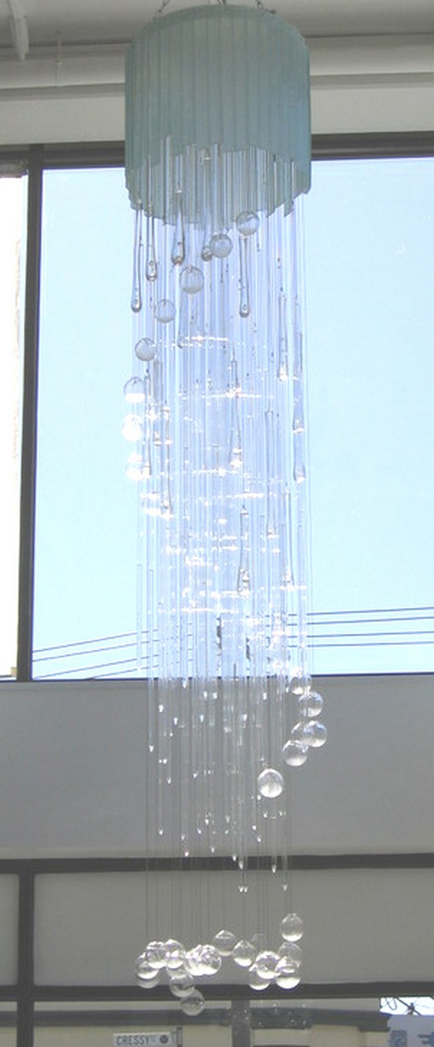 A MODERN GLASS CHANDELIER "GLASS DROPS" - PACKAGED (A/F) (PLEASE NOTE THIS HEAVY ITEM MUST BE REMOVED BY CARRIERS AT THE CUSTOMER'S EXPENSE. LEONARD JOEL STAFF CANNOT ASSIST CARRYING THIS ITEM) (X-LARGE ITEM)