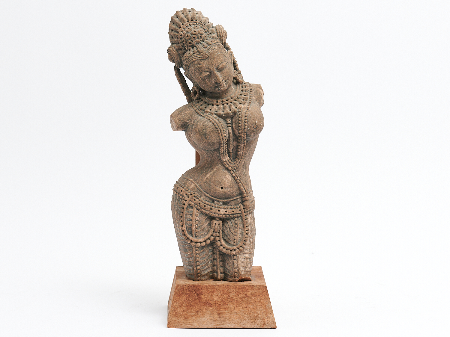 A CARVED STONE INDIAN FIGURE ON STAND H.40CM, LEONARD JOEL LOCAL DELIVERY: MEDIUM
