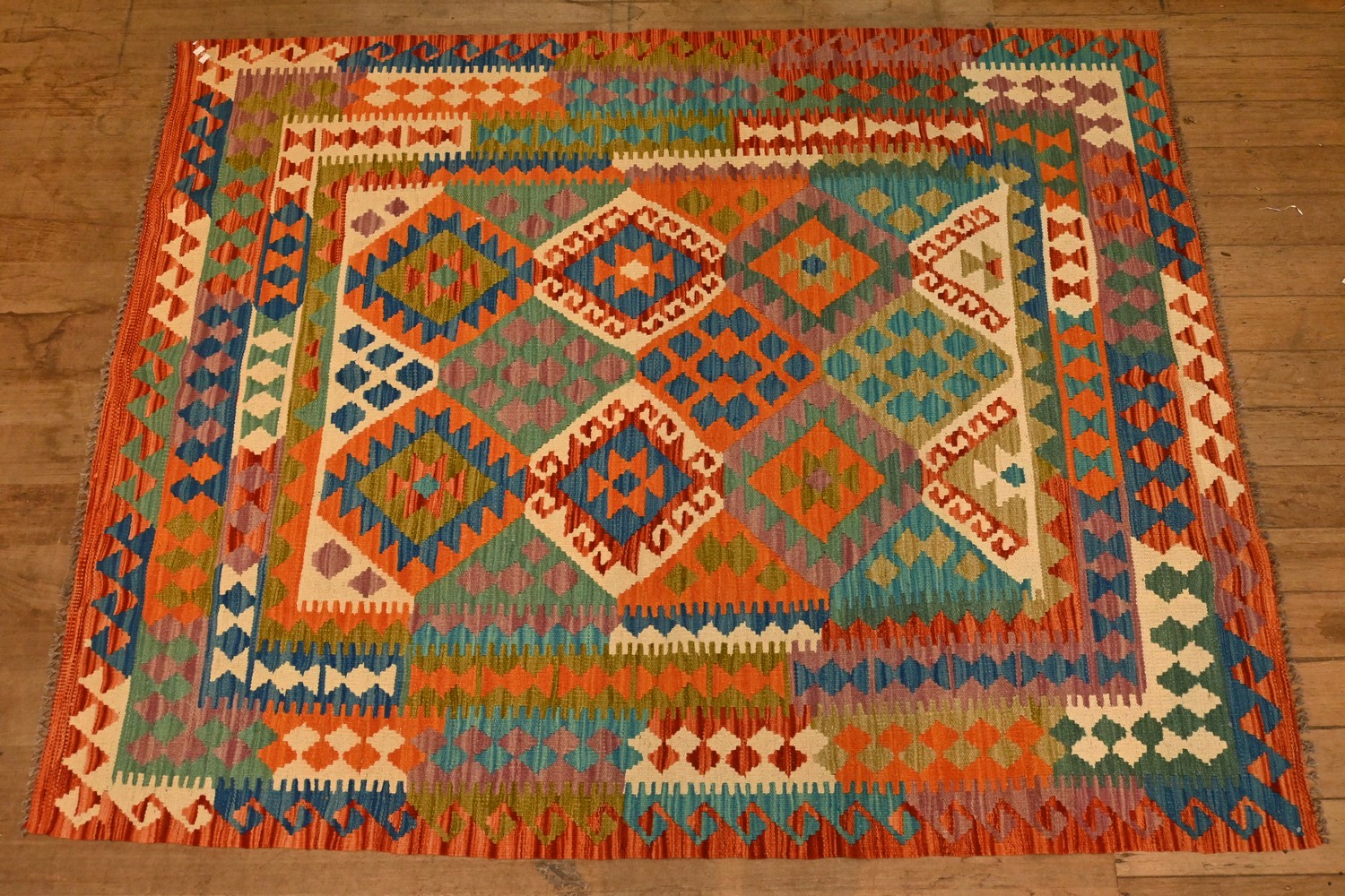 AN AFGHAN KAZAK KILIM IN CAUCASIAN DESIGN, ALL NATURAL VEGETABLE DYES, FULLY REVERSALBLE, 100% WOOL ON WOOL (196 X 155 CM) (LEONARD JOEL DELIVERY SIZE: LARGE)