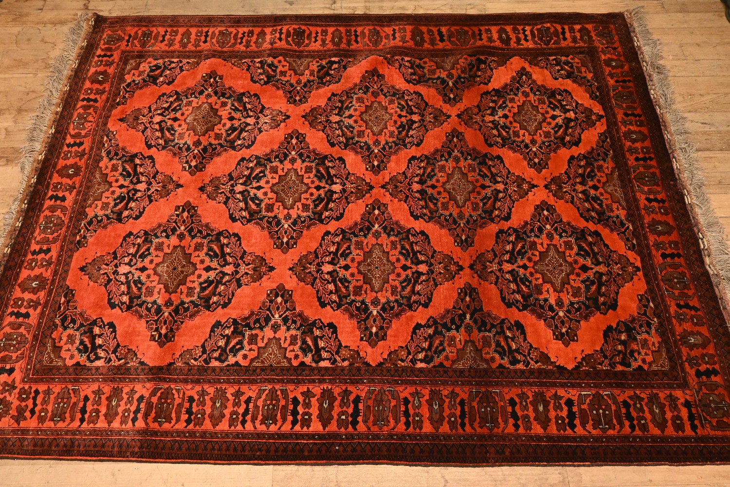 AN AFGHAN KHAL TRIBAL TURKOMAN BELGIQUE RUG, 100% WOOL ON WOOL (295 X 211 CM) (LEONARD JOEL DELIVERY SIZE: X-LARGE)