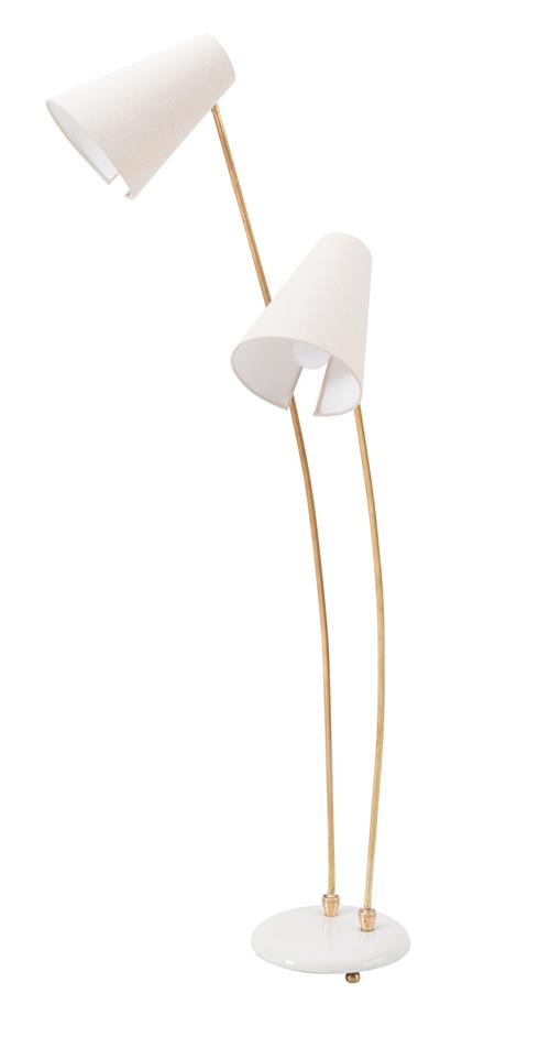 Twin shade, painted metal and brass. Articulating shades and bases.