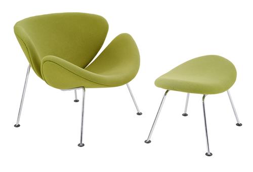 Minor marks and surface scratches to metal frame consistent with age and previous use. Minor fading and wear to fabric upholstery. A few minor stains and marks. The chair and ottoman are stable and structurally sound. Comfortable and in good condition overall.