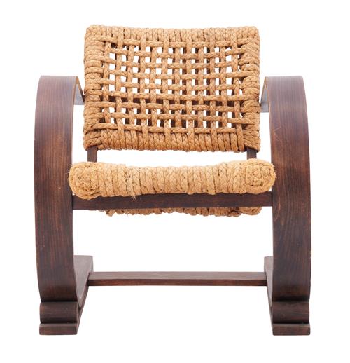 Curved bentwood frame, braided rope seats and back rests. Stamped to base.