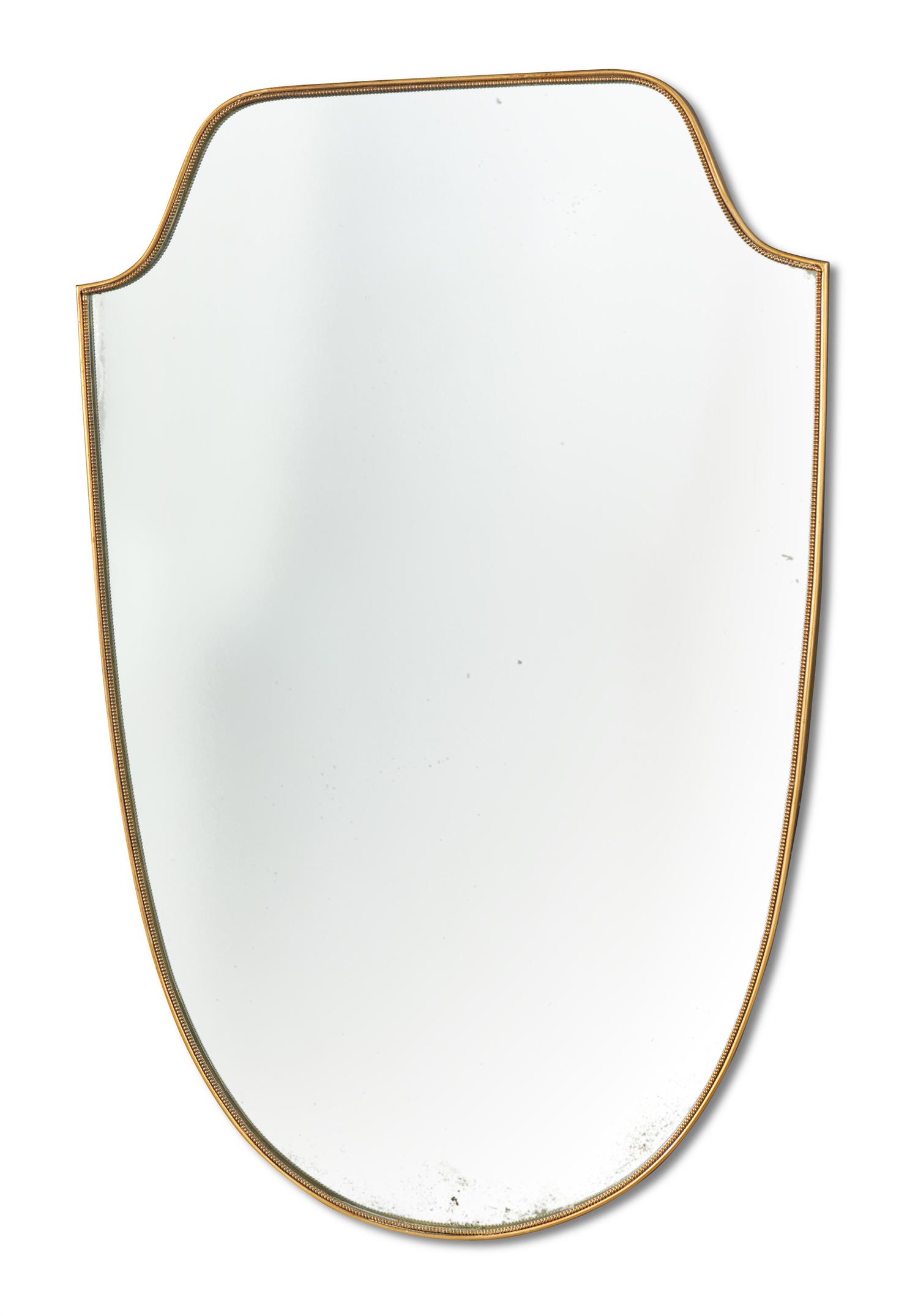 Elements of tarnish and ageing to the glass, particularly at the bottom centre of the mirror. Few minor surface scratches consistent with age and use. Light tarnish to some areas of metal around frame, again consistent with age. Overall in good condition.