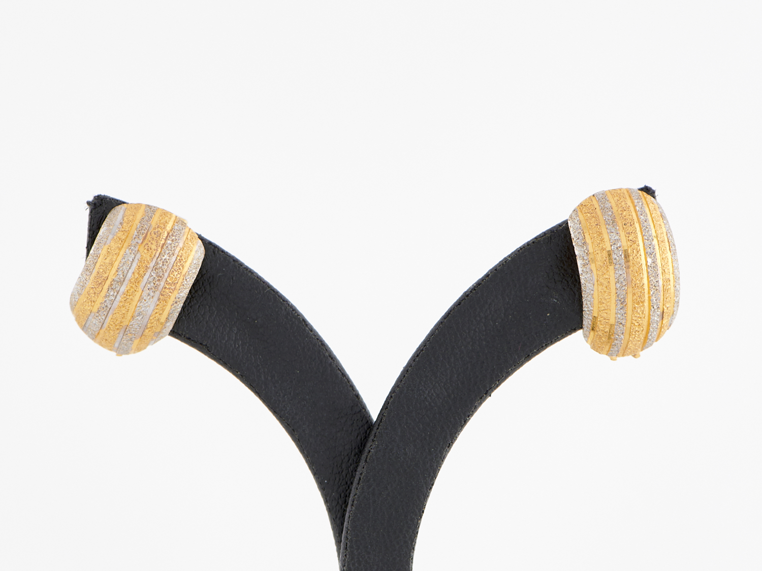 A PAIR OF HUGGIE EARRINGS IN 22CT TWO TONE GOLD TO POST AND CLIP FITITNGS, SIZE 10 X 17MM, WEIGHT 4.70 GMS