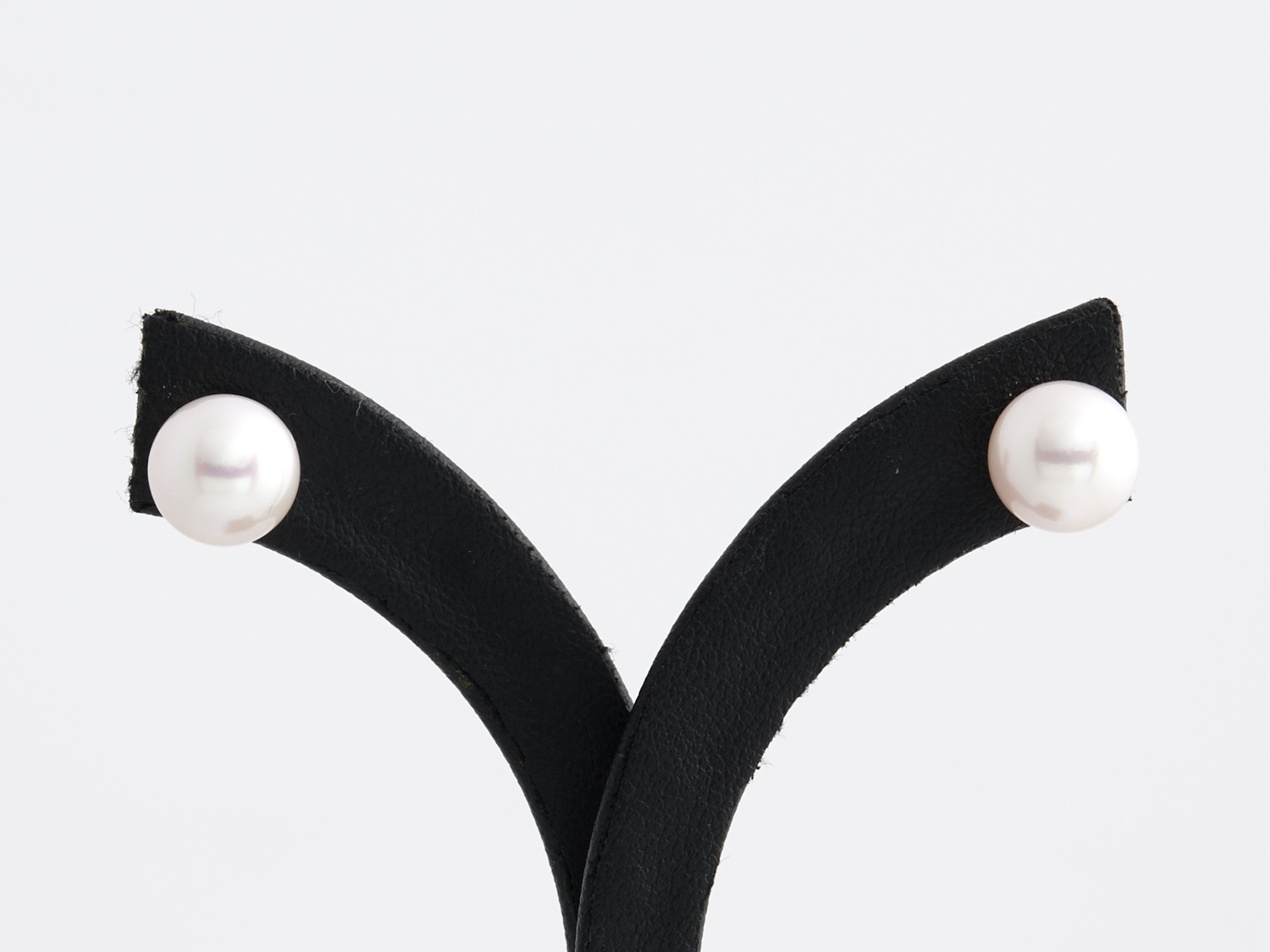 A PAIR OF CULTURED PEARL EARRINGS IN 18CT GOLD, TO POST AND BUTTERFLY FITTINGS, THE PEARLS MEASURING APPOXIMATELY 8.8MM