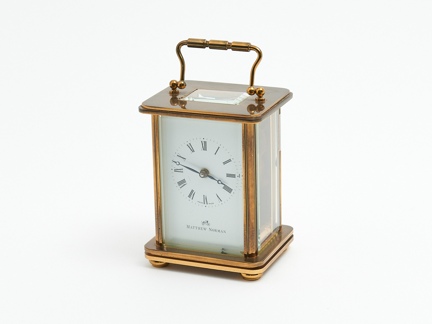 A MATTHEW NORMAN CARRIAGE CLOCK, H.11CM (A/F), LEONARD JOEL LOCAL DELIVERY: SMALL