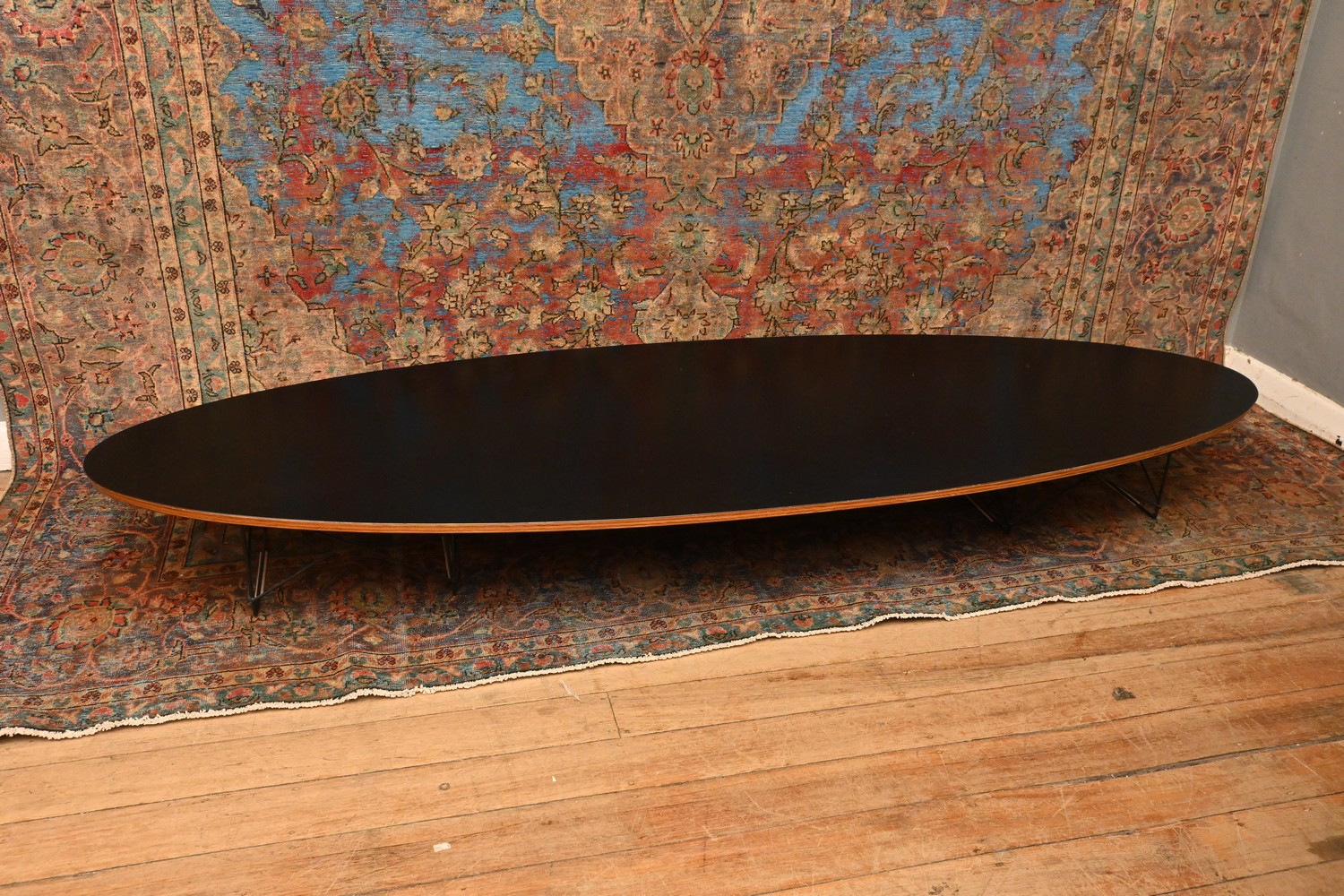 AN EAMES STYLE SURFBOARD FORM LOW COFFEE TABLE (A/F) (25H X 226W X 74D CM) (LEONARD JOEL DELIVERY SIZE: X-LARGE)