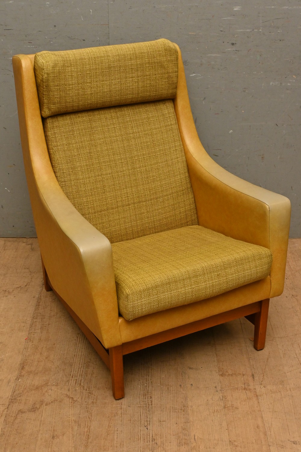 A RETRO UPHOLSTERED ARMCHAIR (A/F) (88H X 70W X 85D CM) (LEONARD JOEL DELIVERY SIZE: X-LARGE)