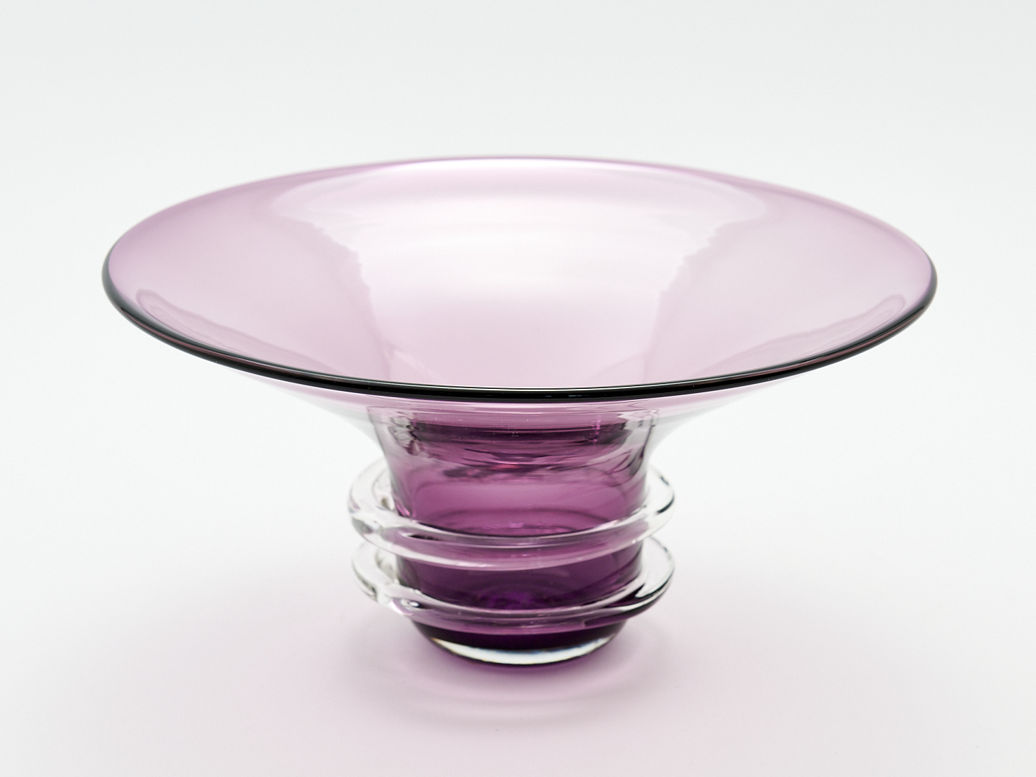A MAUVE GLASS COMPORT, SIGNED H.13CM X DIA. 26CM, LEONARD JOEL LOCAL DELIVERY: SMALL