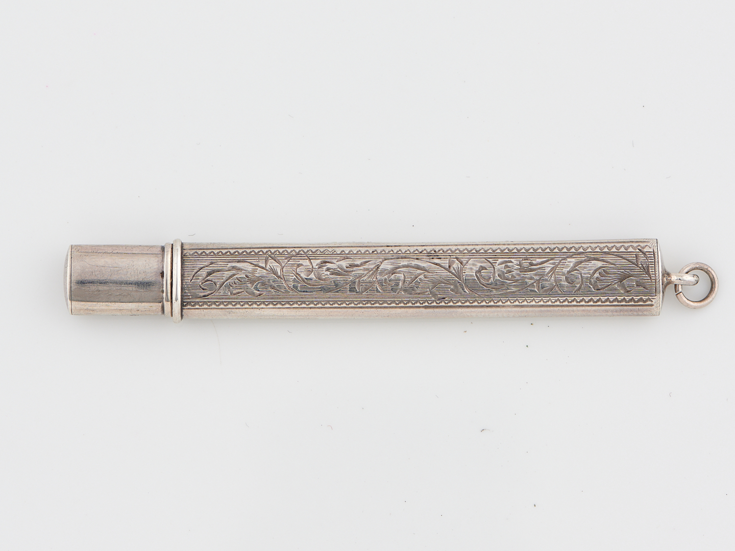 AN ANTIQUE PROPELLING PENCIL IN STERLING SILVER, BIRMINGHAM HALLMARKS, LENGTH 75MM