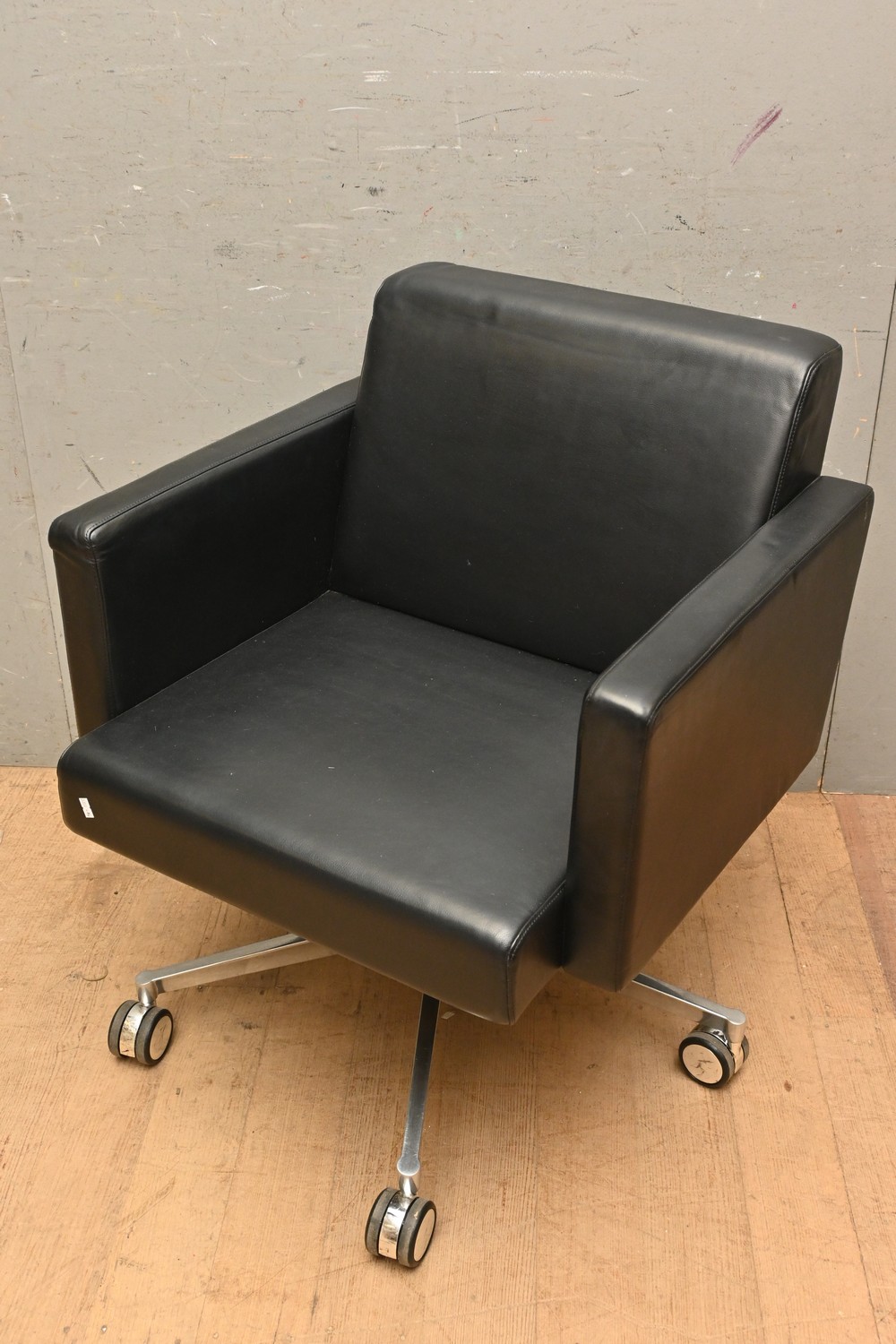 A POLTRONA FRAU ITALIAN DESIGN "FIFTY SERIES" BLACK LEATHER ARMCHAIR (H77 X W67 X D65 CM) (LEONARD JOEL DELIVERY SIZE: EXTRA-LARGE)