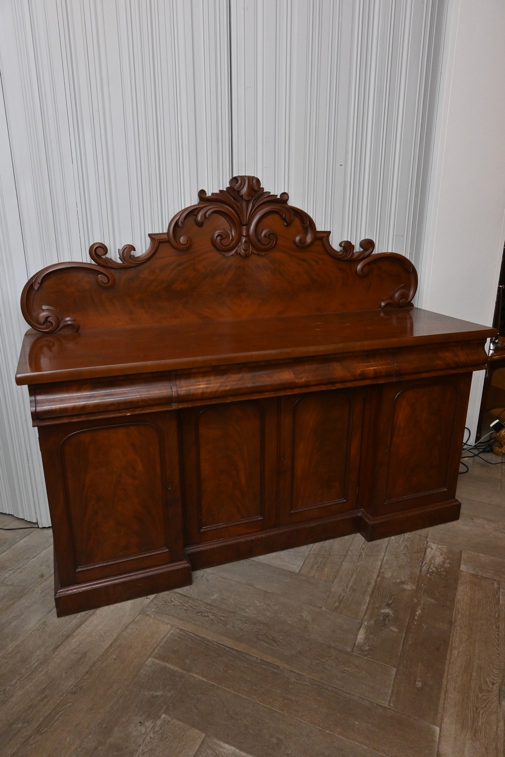 A VICTORIAN MAHOGANY BREAKFRONT SIDEBOARD (154H X 184W X 57D CM) (PLEASE NOTE THIS HEAVY ITEM MUST BE REMOVED BY CARRIERS AT THE CUSTOMER'S EXPENSE. LEONARD JOEL STAFF CANNOT ASSIST CARRYING THIS ITEM) (X-LARGE ITEM)
