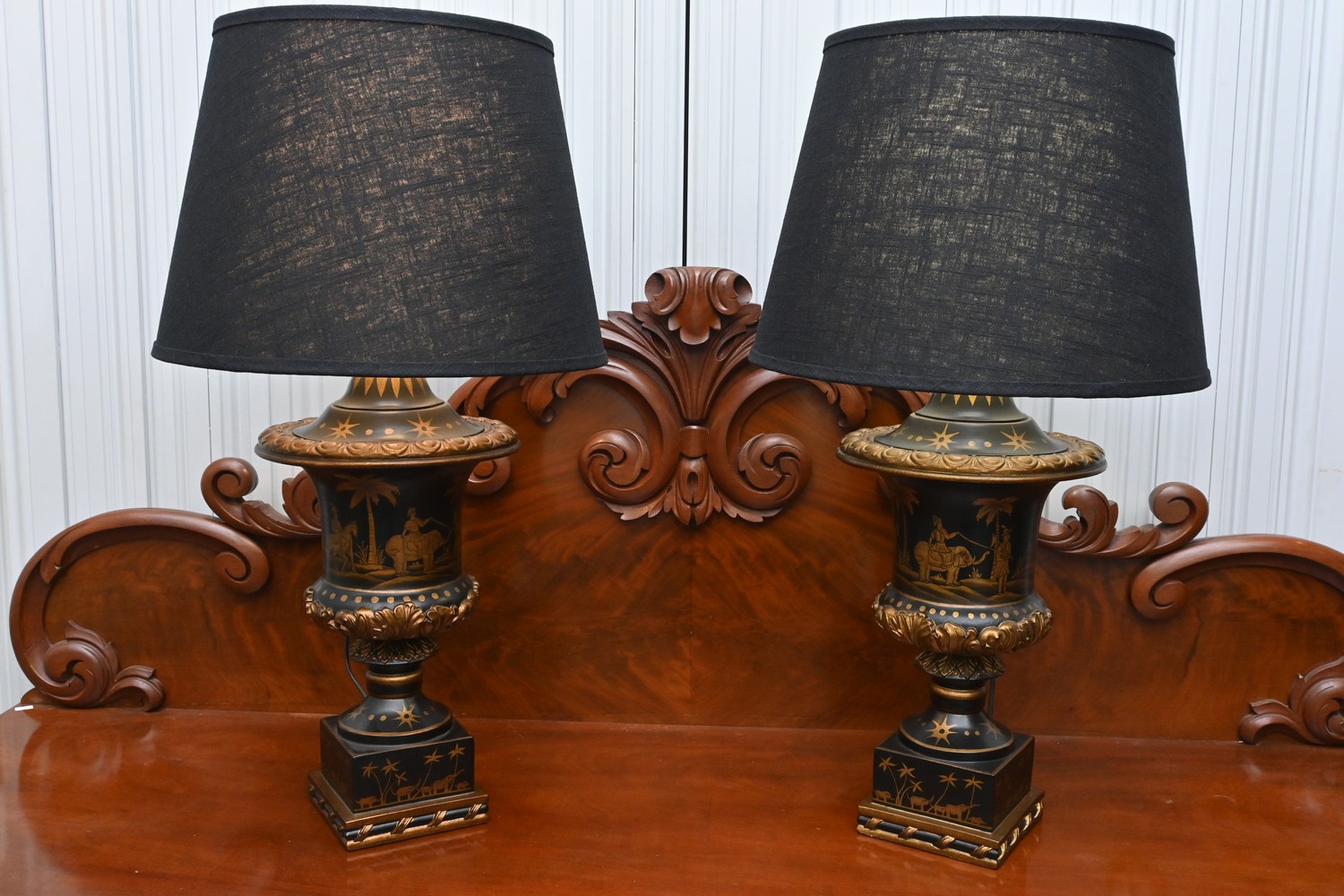 A PAIR OF CHINOISERIE STYLE TABLE LAMPS (84H X 46D CM) (LEONARD JOEL DELIVERY SIZE: LARGE)