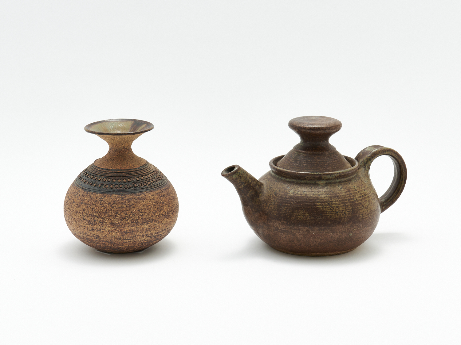 AN AUSTRALIAN MID-CENTURY POTTERY TEAPOT AND VASE BY RICK OAKLEY H.15CM, LEONARD JOEL LOCAL DELIVERY: SMALL