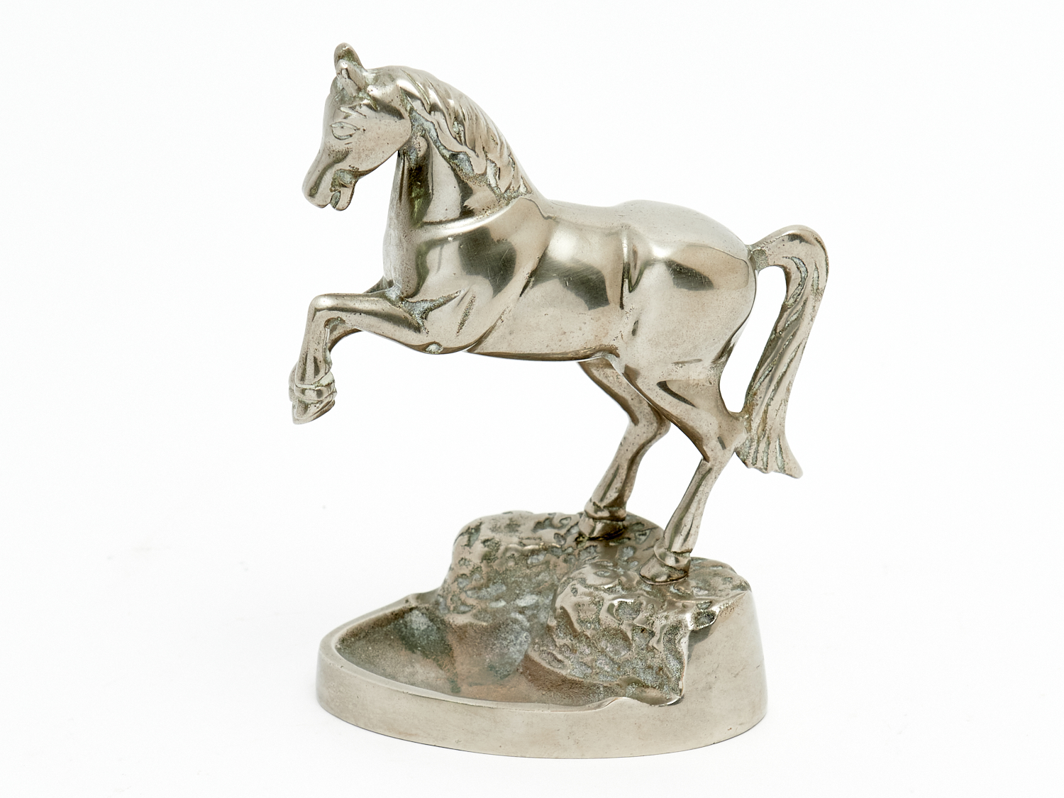 A SILVERED METAL HORSE ASHTRAY H.20CM, LEONARD JOEL LOCAL DELIVERY: SMALL