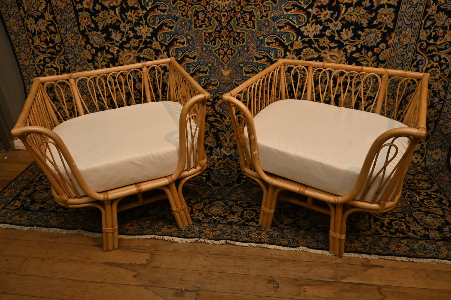 TWO RATTAN LOUNGE CHAIRS (76H X 81W X 71D CM) (LEONARD JOEL DELIVERY SIZE: X-LARGE)