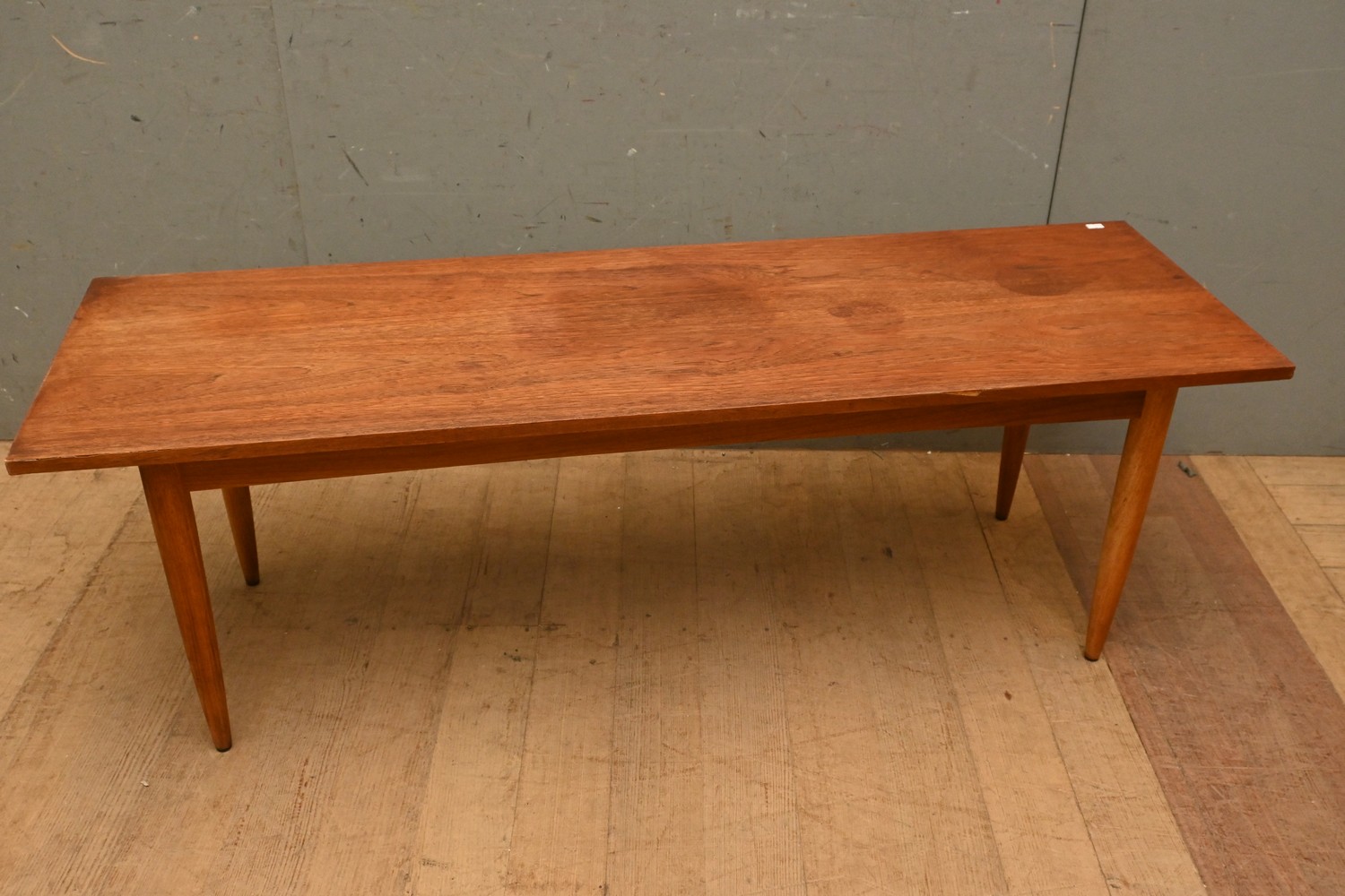 A MID CENTURY TEAK COFFEE TABLE (A/F) (H46 X W137 X D43 CM) (LEONARD JOEL DELIVERY SIZE: LARGE)