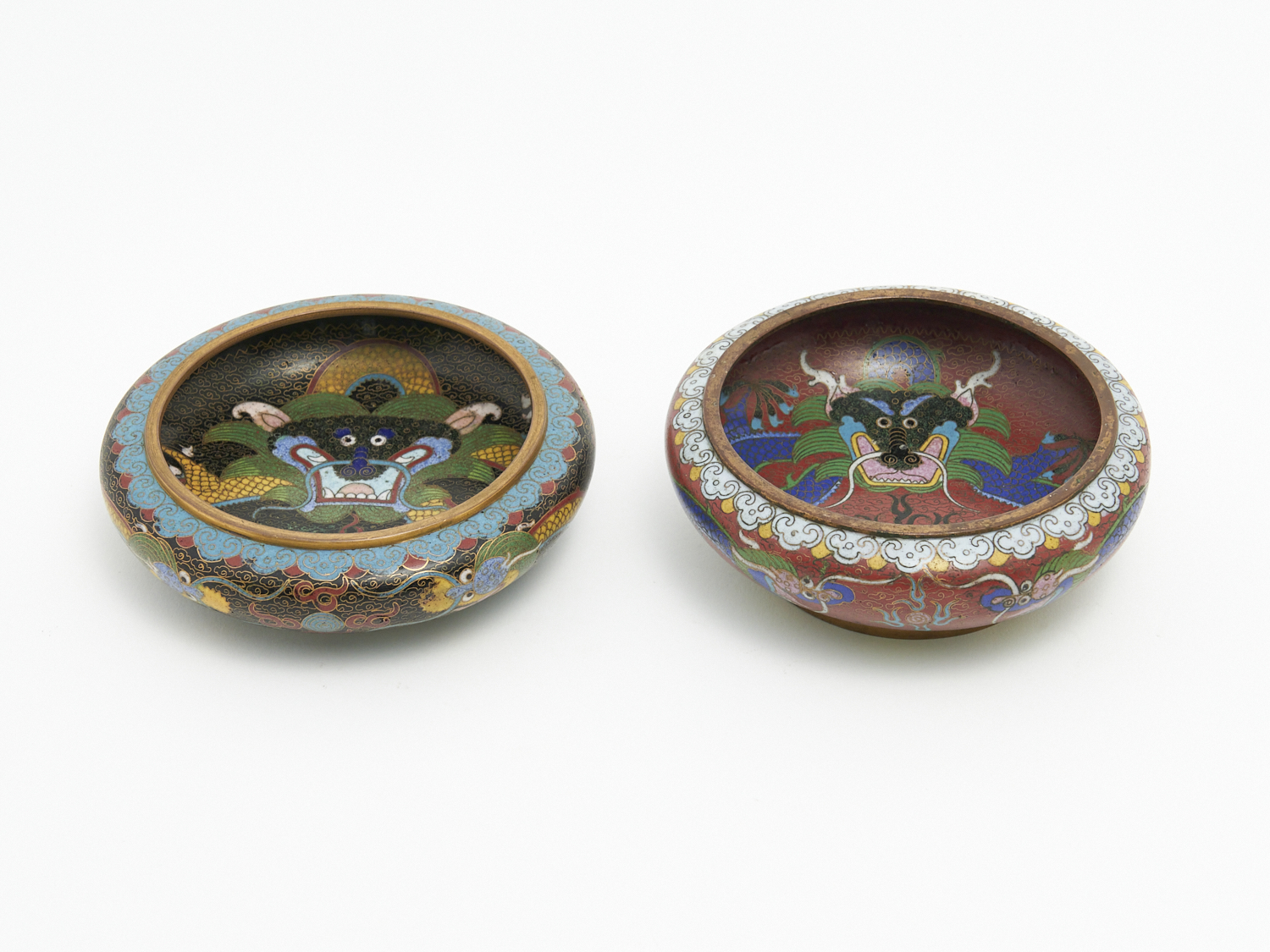 TWO CHINESE DRAGON ADORNED CLOISONNE BOWLS, DIA.14CM, LEONARD JOEL LOCAL DELIVERY: SMALL