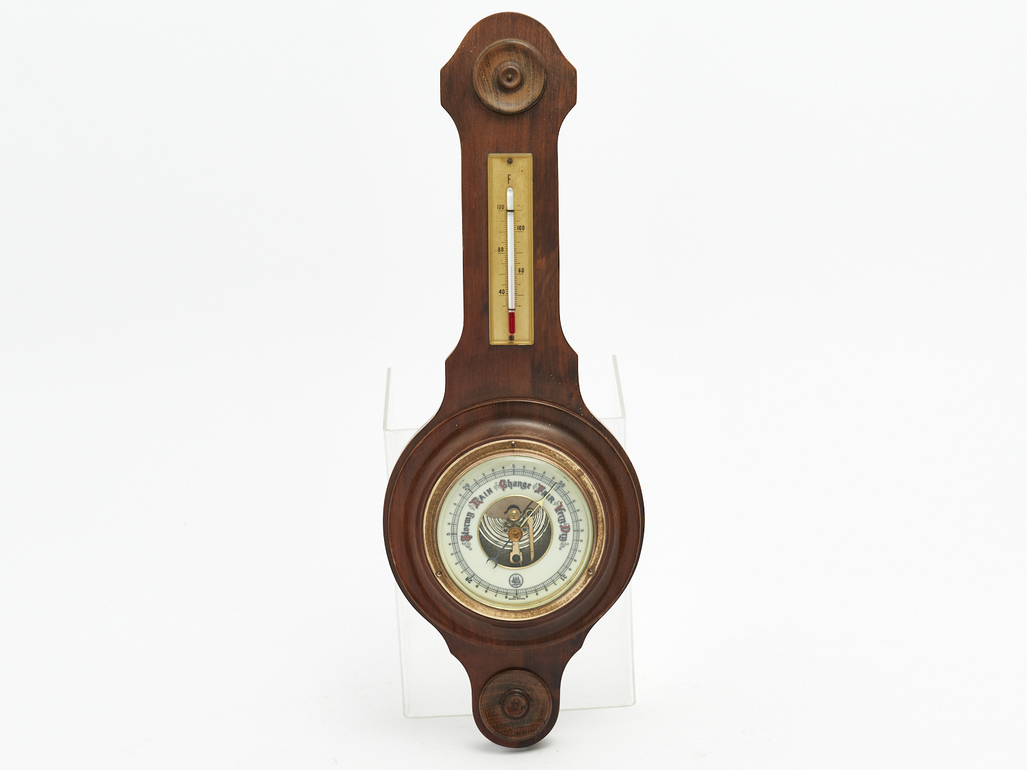 A GERMAN MADE MAHOGANY WALL MOUNT BAROMETER AND THERMOMETER, L.47CM, LEONARD JOEL LOCAL DELIVERY: MEDIUM
