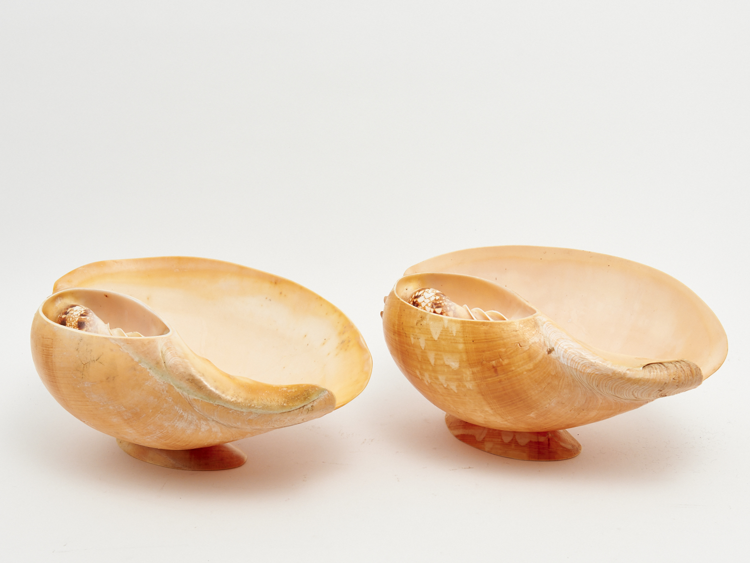 A PAIR OF LARGE SHELL FORM BOWLS, H.15CM X W.35CM, LEONARD JOEL LOCAL DELIVERY: MEDIUM