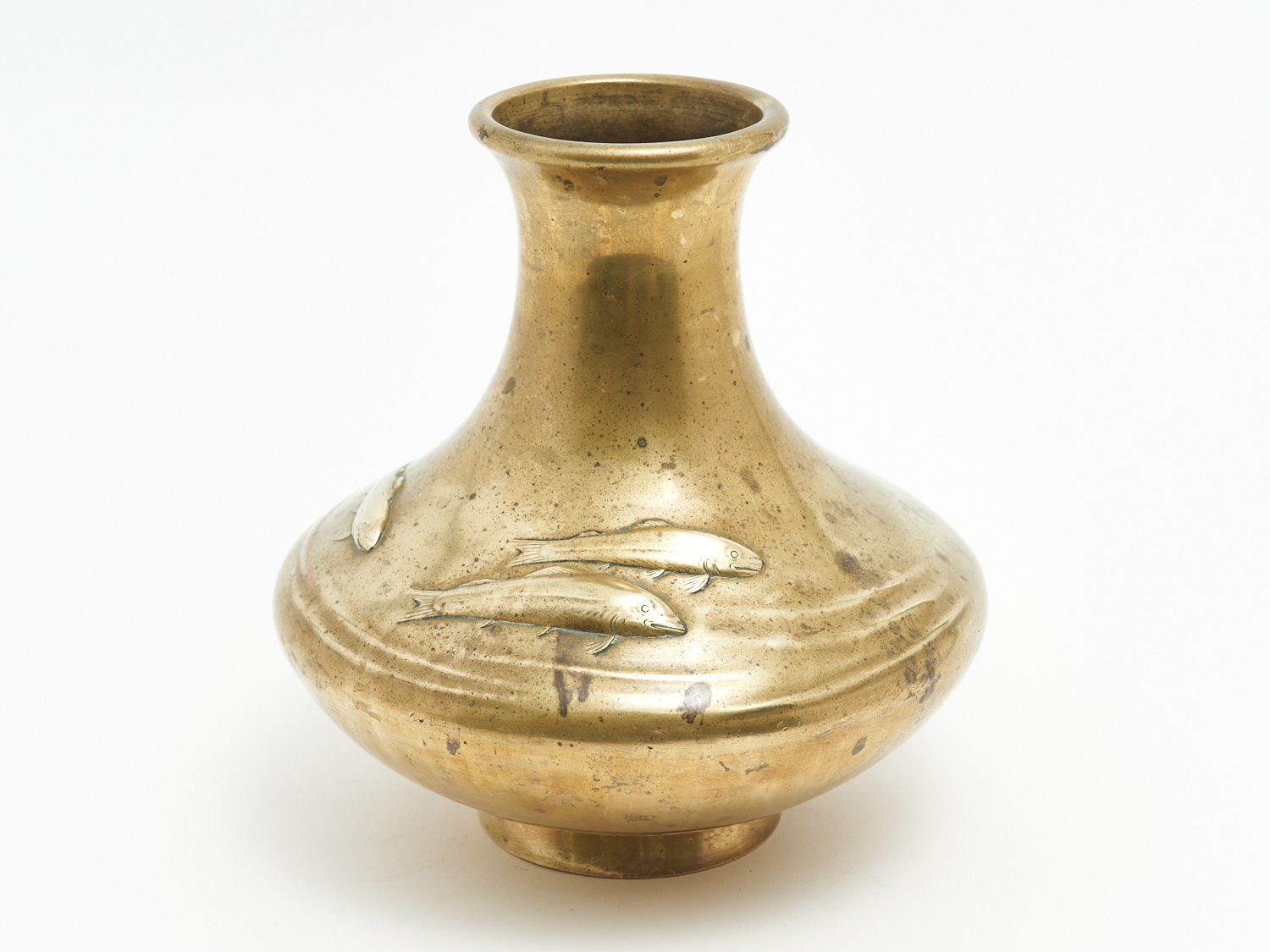 A JAPANESE BRONZE VASE WITH RAISED FISH DECORATION, H.22CM, LEONARD JOEL LOCAL DELIVERY: MEDIUM