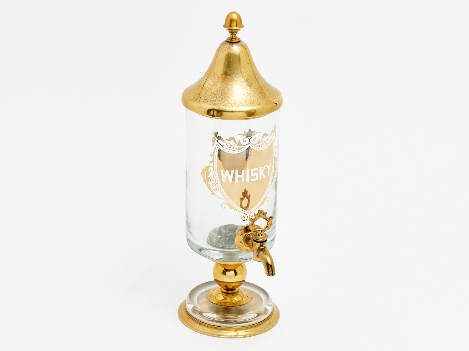 AN ITALIAN BRASS AND CRYSTAL WHISKEY DISPENSING DECANTER, H.37.5CM, LEONARD JOEL LOCAL DELIVERY: MEDIUM