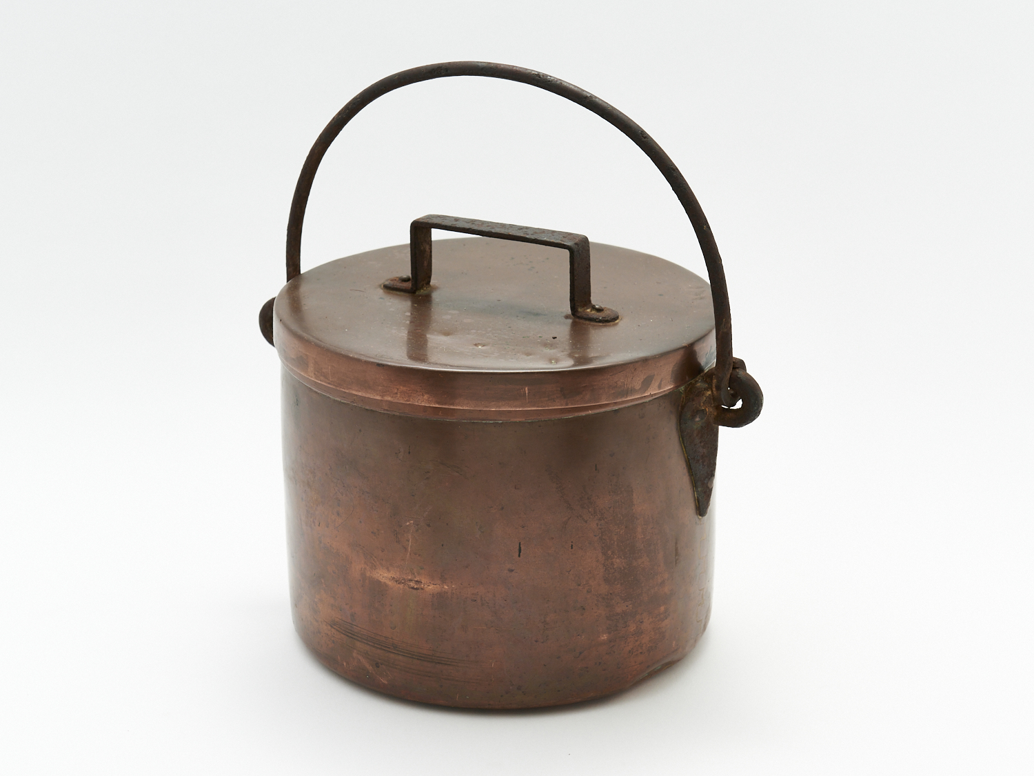 A 19TH-CENTURY FRENCH BRASS LIDDED POT WITH WROUGHT IRON SWING HANDLE, DIA.23.5CM, LEONARD JOEL LOCAL DELIVERY: MEDIUM
