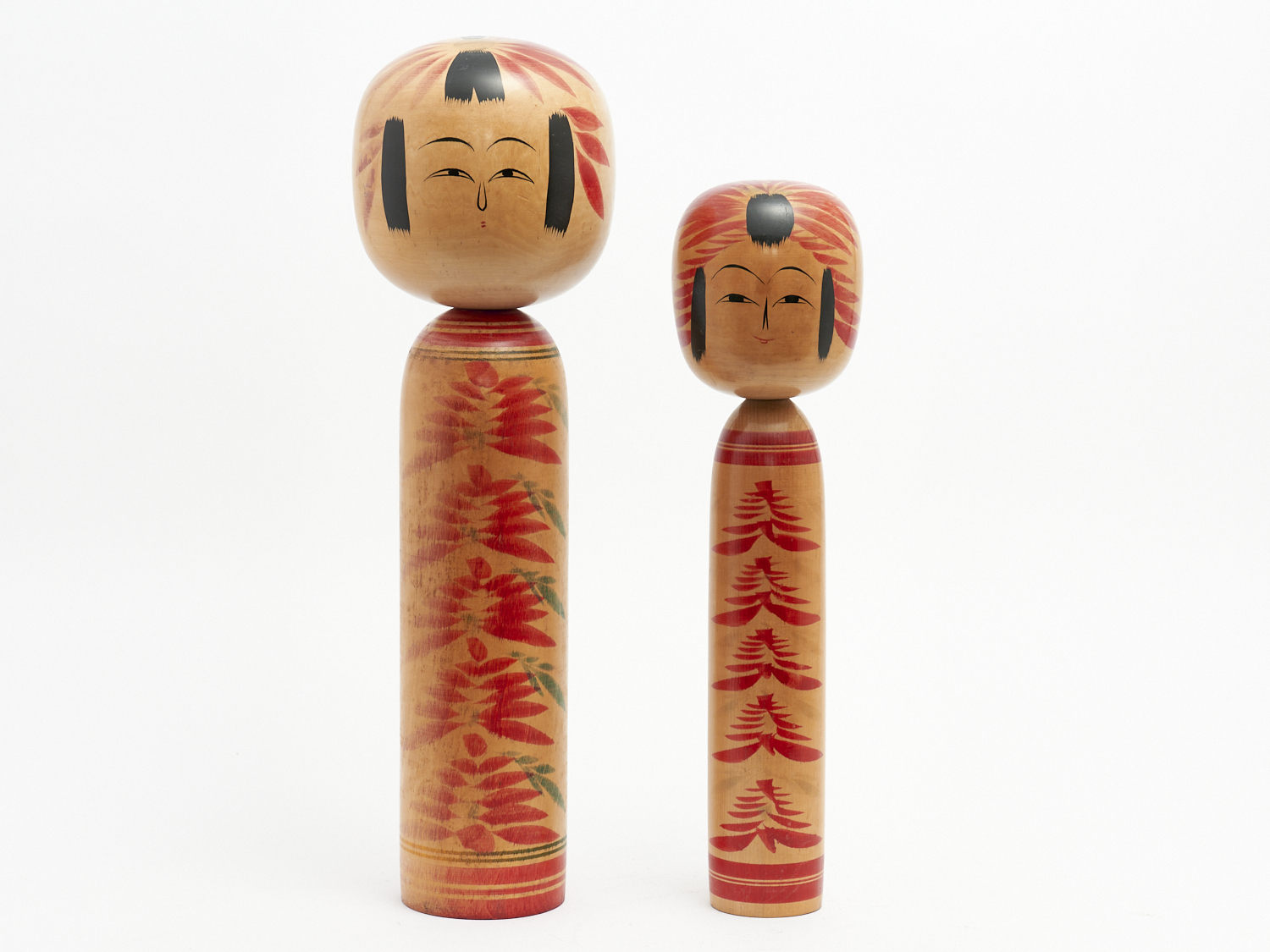 TWO LARGE VINTAGE JAPANESE HAND PAINTED WOODEN KOKESHI DOLLS, H.56CM, LEONARD JOEL LOCAL DELIVERY: MEDIUM