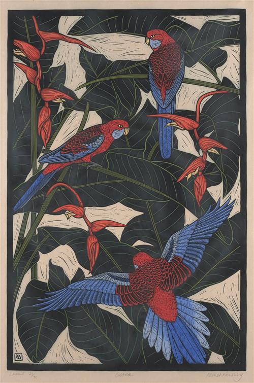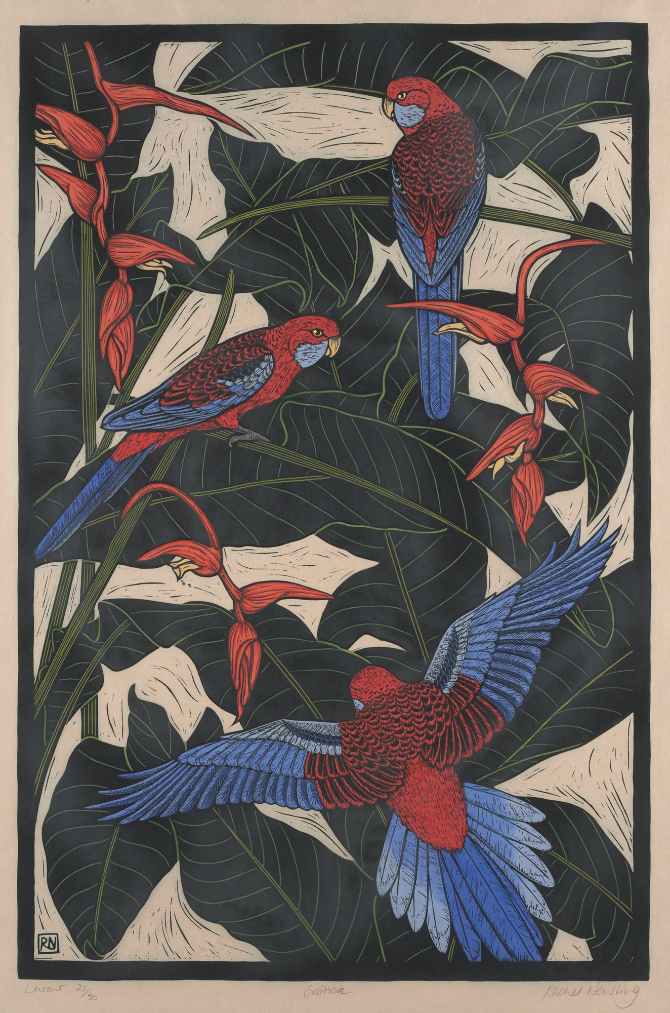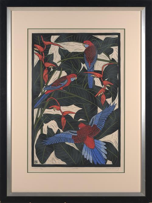 hand-coloured linocut, ed. 27/50