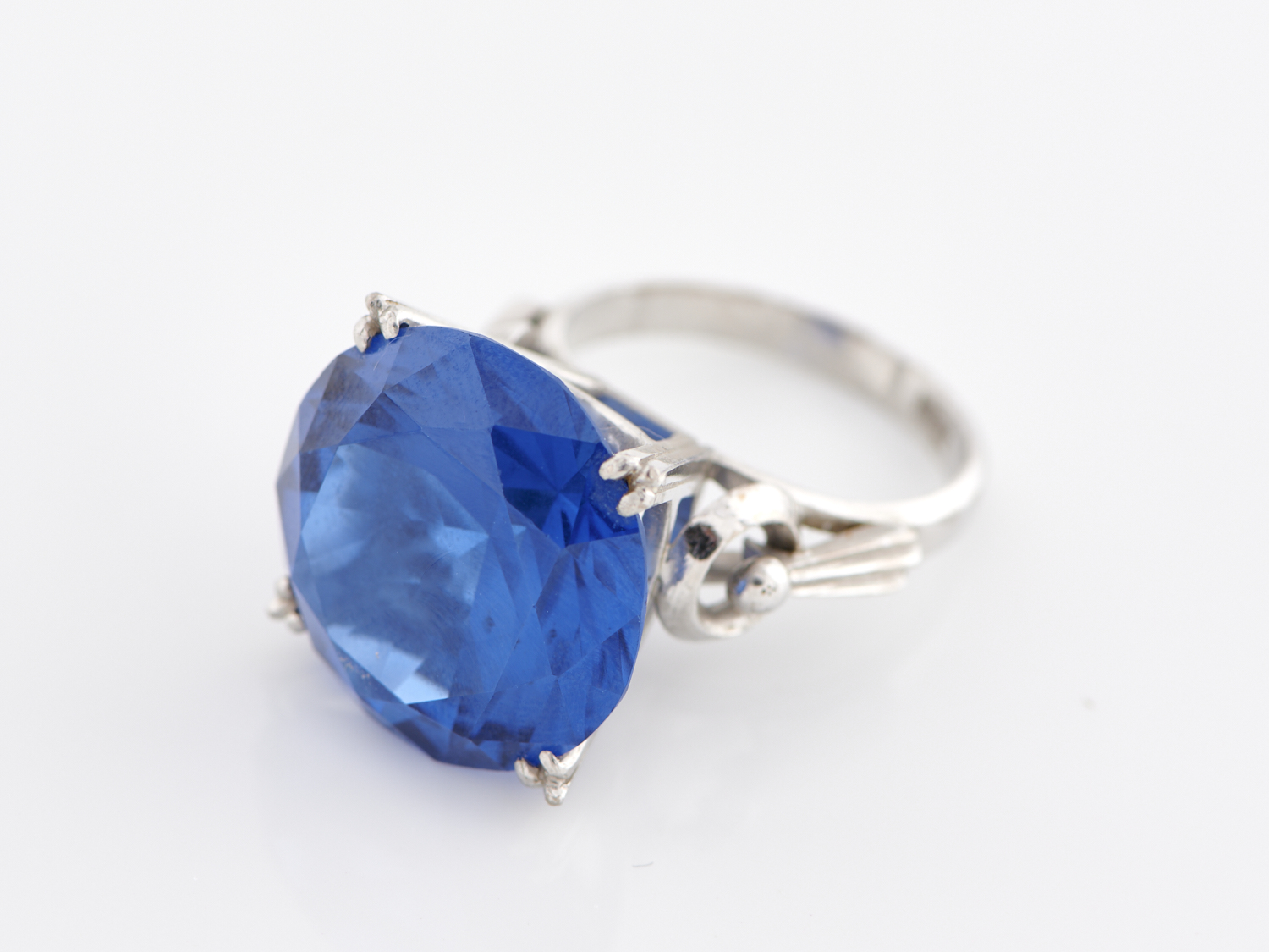 A BLUE PASTE SET COCKTAIL RING IN LOW CARAT WHITE GOLD, SIZE P