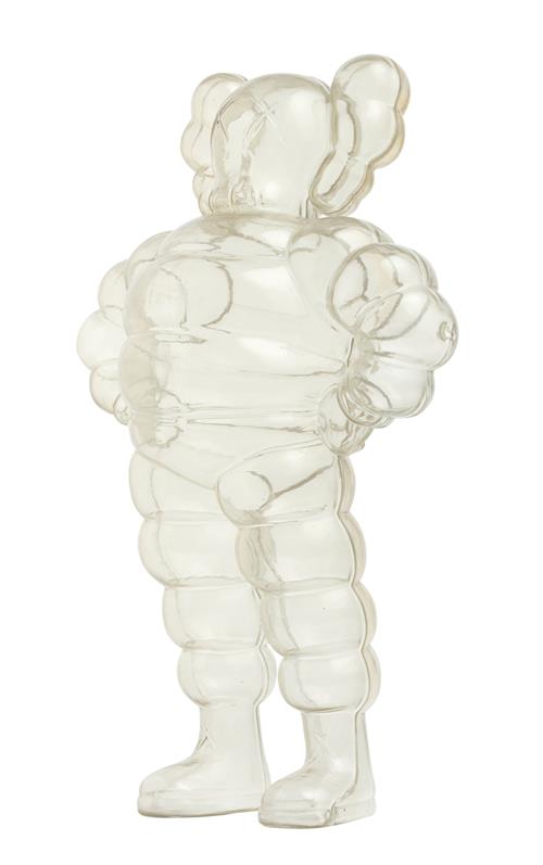 One of KAWS' most prominent reoccurring characters is 'Chum', an adaption of the Michelin Man. 'Chum' is not only appealing and speaks to a wide audience across generations, but his playful temperament brings out the familiar child in us. 'Chum' started appearing in 2001 in a suite of five different colour ways and following the success of these works, 'Chum (Clear)' was created as an edition of 1000.