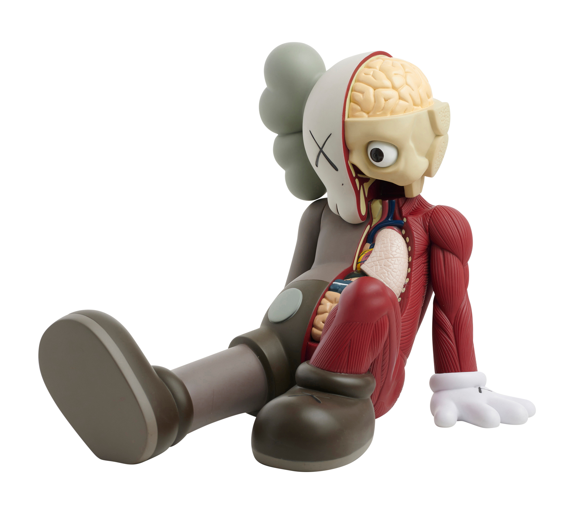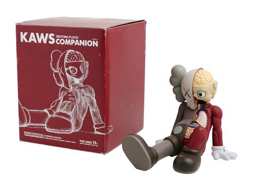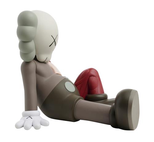 In 2012 the artist created 'Resting Place Companion', a play on the original 1999 Companion vinyl figure. An iconic and monumental appropriation, 'Companion Resting Place' slouches carefree in a moment of pensive stillness, with its body intersected, revealing a colourful cartoon rendering of its anatomy. KAWS' vinyl figures have been adapted across multiple mediums, whether in print, toy or in life-sized sculptural form, KAWS' adaptable 'Resting Place Companion' and 'Chum' inspires a growing dedicated following from all corners of the world.