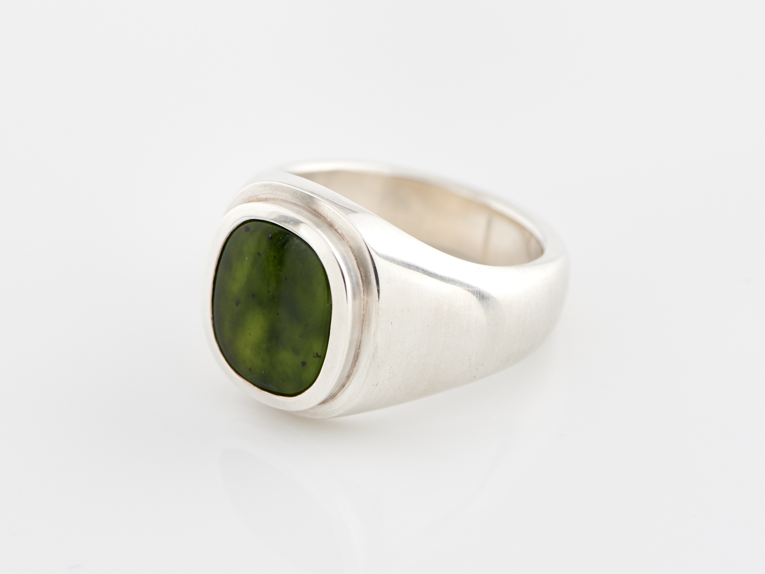 A CHROME CHRYSOPRASE SIGNET RING IN STERLING SILVER, SIZE S, 17.0GMS