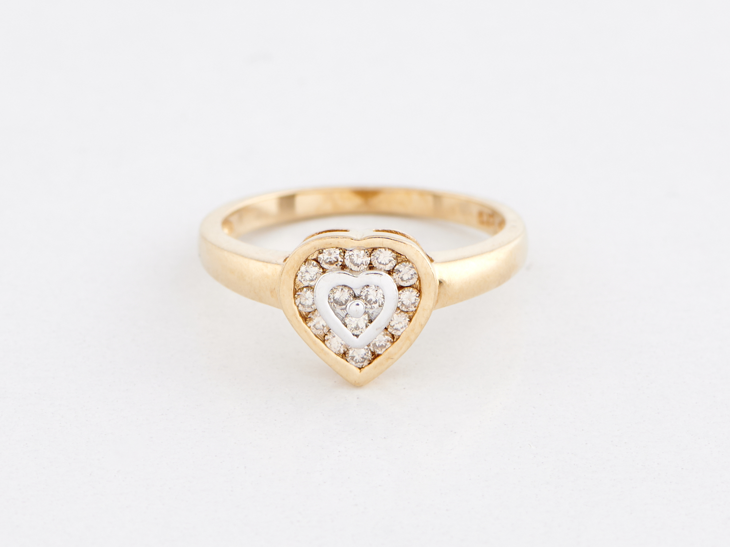 A DIAMOND SET HEART RING IN 9CT GOLD, THE DIAMONDS TOTALLING APPROXIMATELY 0.18CTS, RING SIZE N1/2, WEIGHT 2.3GMS