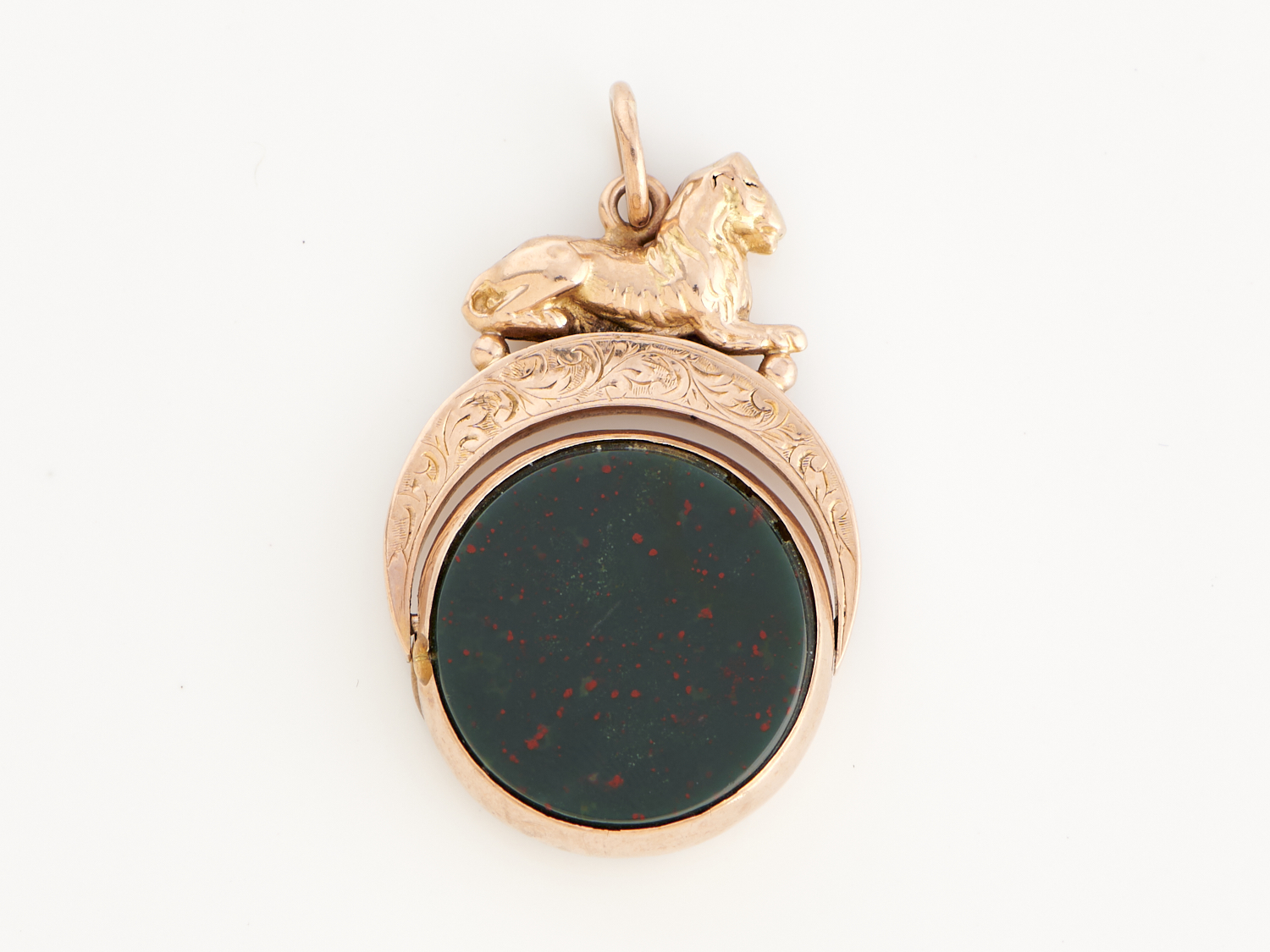 AN ANTIQUE CARNELIAN AND BLOODSTONE SPINNER IN 9CT GOLD, SPINNER DIAMETER 20MM, CHESTER HALLMARKS