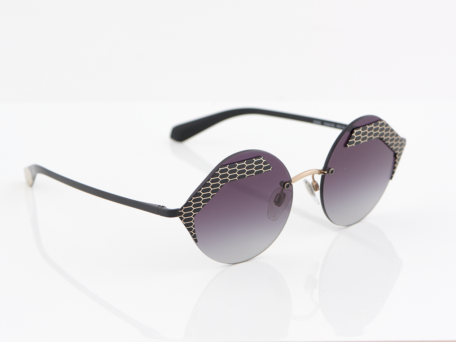 BULGARI, PAIR OF SUNGLASSES, STYLED FEATURING TITANIUM SNAKESKIN PRINT ACCENTS TO ROUND TINTED LENSES, BOXED