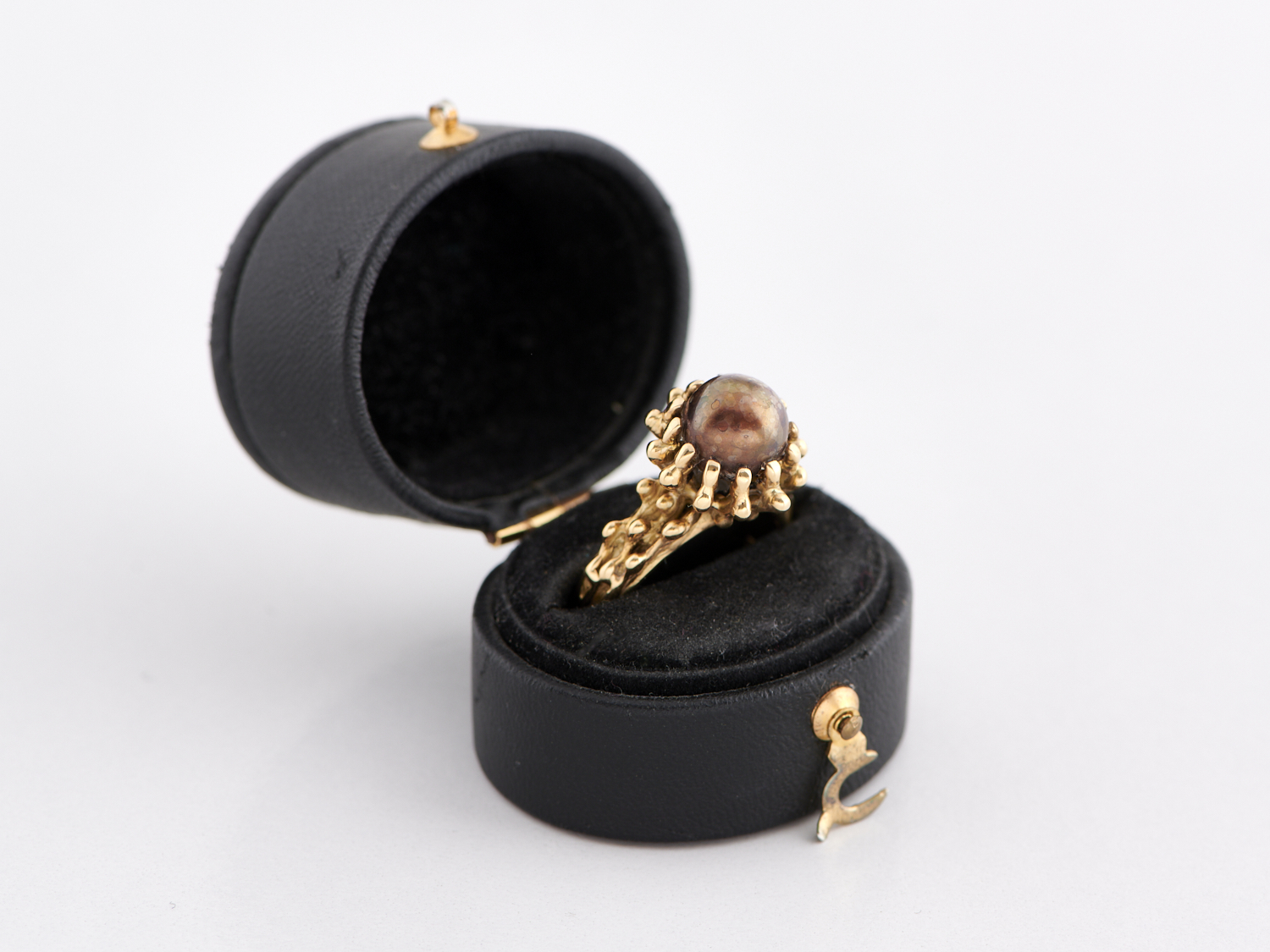 A PEARL SET RING IN 18CT GOLD, RING SIZE G-H, 9.6GMS