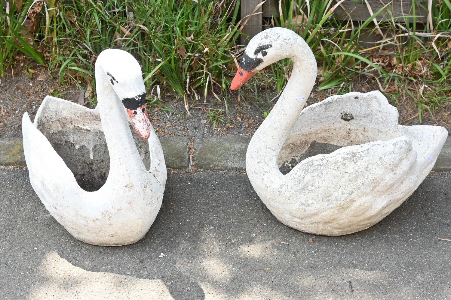 TWO CONCRETE VINTAGE SWAN PLANTERS (A/F) (57H X 55W X 36D CM) (PLEASE NOTE THIS HEAVY ITEM MUST BE REMOVED BY CARRIERS AT THE CUSTOMER'S EXPENSE. LEONARD JOEL STAFF CANNOT ASSIST CARRYING THIS ITEM) (X-LARGE ITEM)