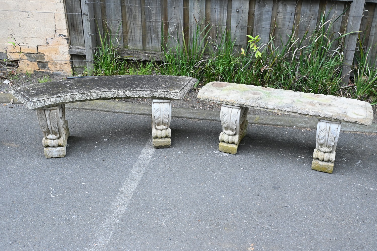 TWO CONCRETE BENCHES (A/F) (48H X 138W X 45D CM) (PLEASE NOTE THIS HEAVY ITEM MUST BE REMOVED BY CARRIERS AT THE CUSTOMER'S EXPENSE. LEONARD JOEL STAFF CANNOT ASSIST CARRYING THIS ITEM) (X-LARGE ITEM)
