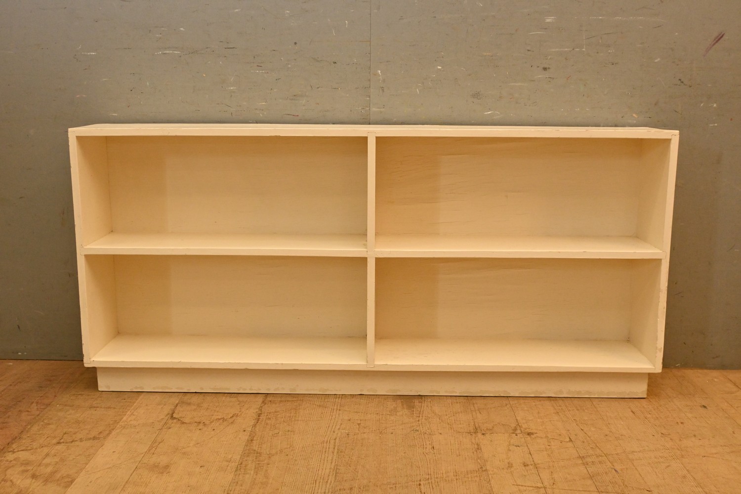 A WHITE PAINTED BOOKSHELF (A/F) ( 70H X 150W X 23D CM) (LEONARD JOEL DELIVERY SIZE: LARGE)