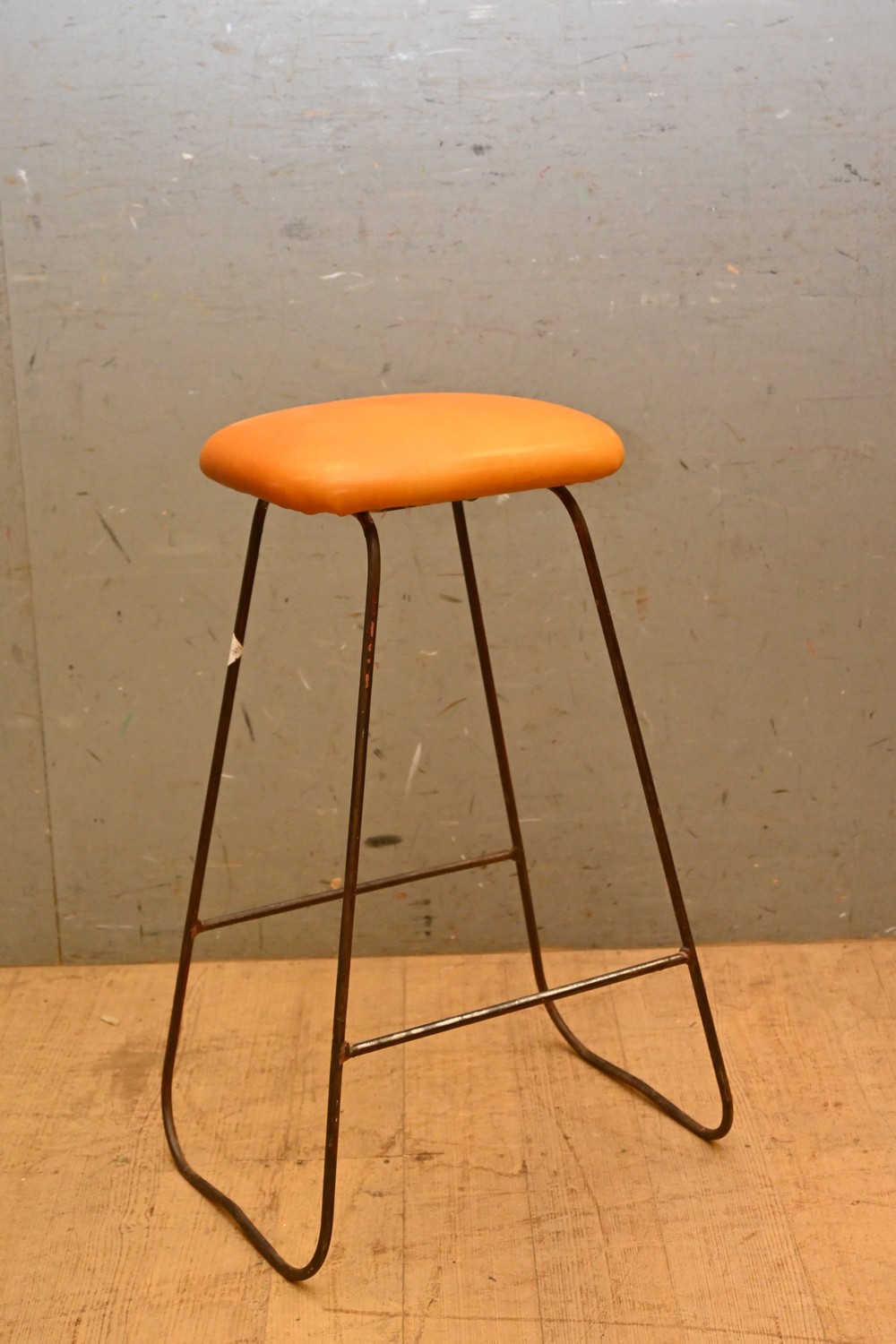 A MID CENTURY METAL WITH LEATHER STOOL (67H X 43W X 33D) CM (LEONARD JOEL DELIVERY SIZE: LARGE)