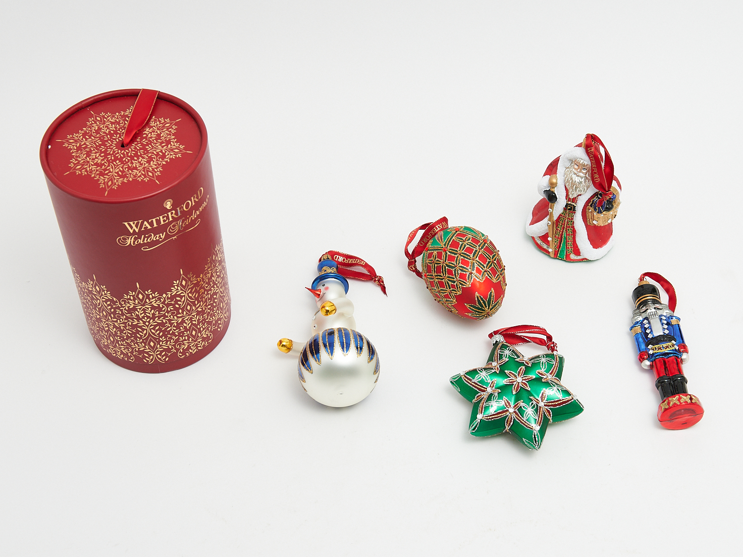 A GROUP OF CHRISTMAS DECORATIONS INCLUDING WATERFORD, SNOWMAN, HEART, FABERGE EGGS, STARS ETC. (10), LEONARD JOEL LOCAL DELIVERY: SMALL