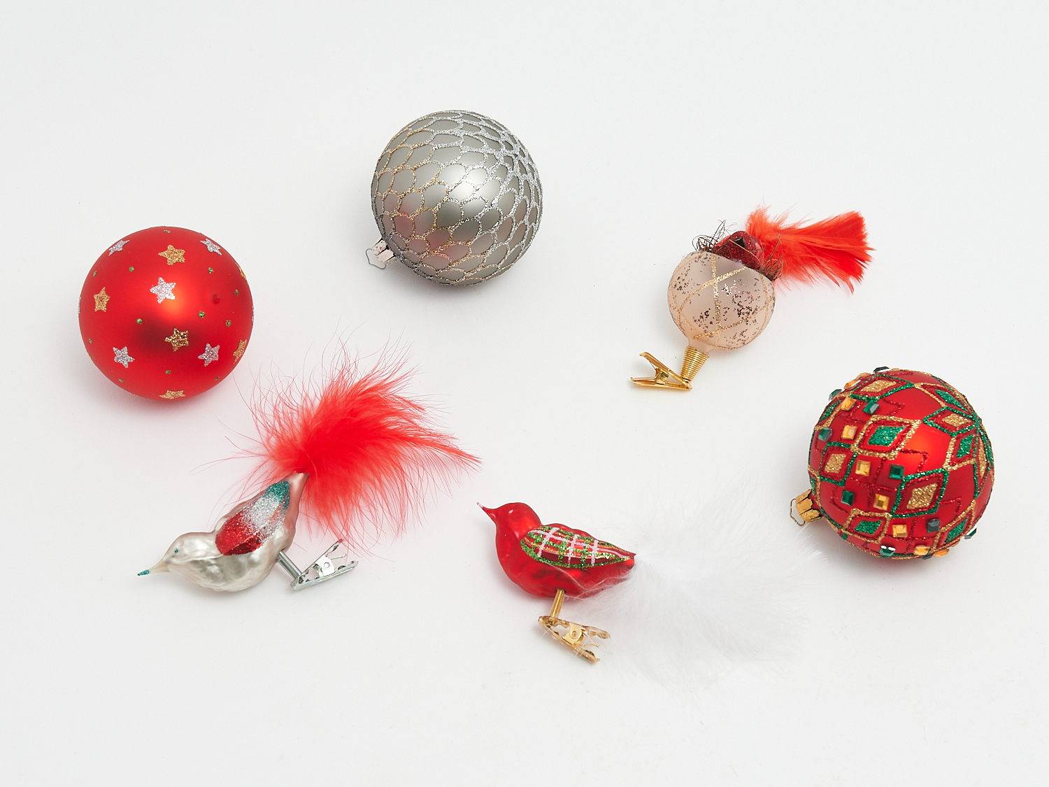 A GROUP OF 21 CHRISTMAS TREE DECORATIONS INCLUDING CHRISTBORN - RED, SILVER AND GOLD COLOUR THEME, LEONARD JOEL LOCAL DELIVERY: MEDIUM