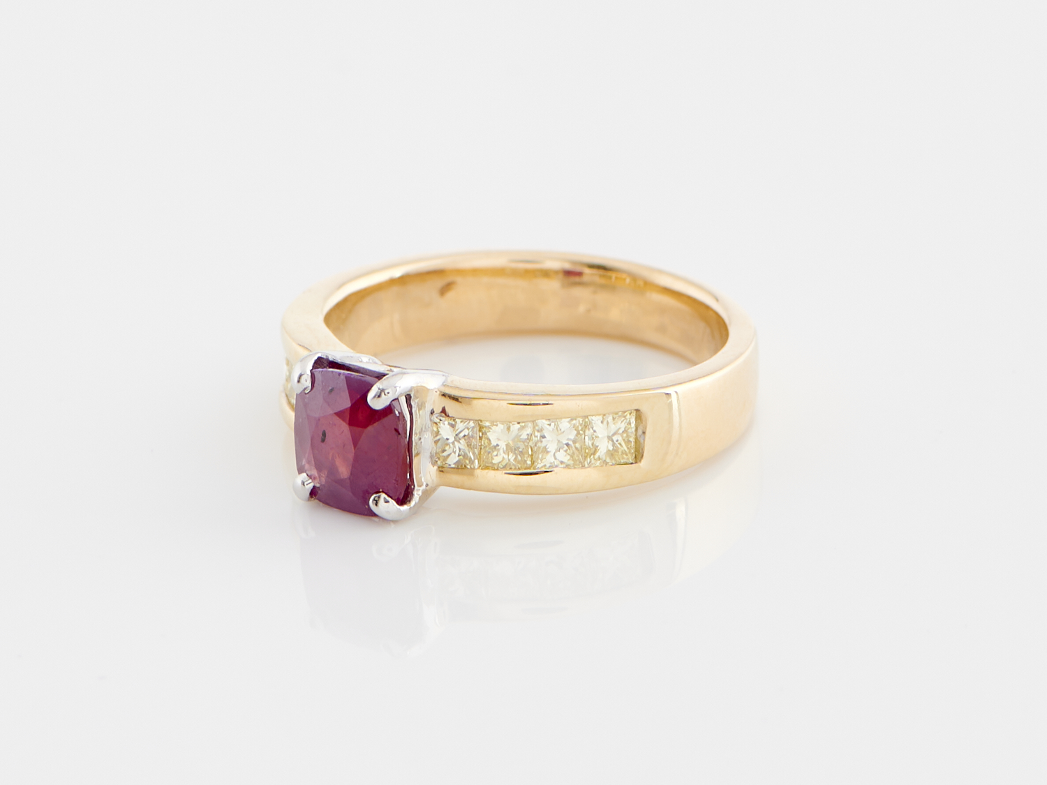 AN UNHEATED RUBY  AND DIAMOND RING IN 18CT GOLD, RING SIZE L, THE RUBY OF 1.33CTS, THE DIAMONDS TOTALLING 1.20CTS, ACCOMPANIED BY CERTIFICATE AND VALUATION