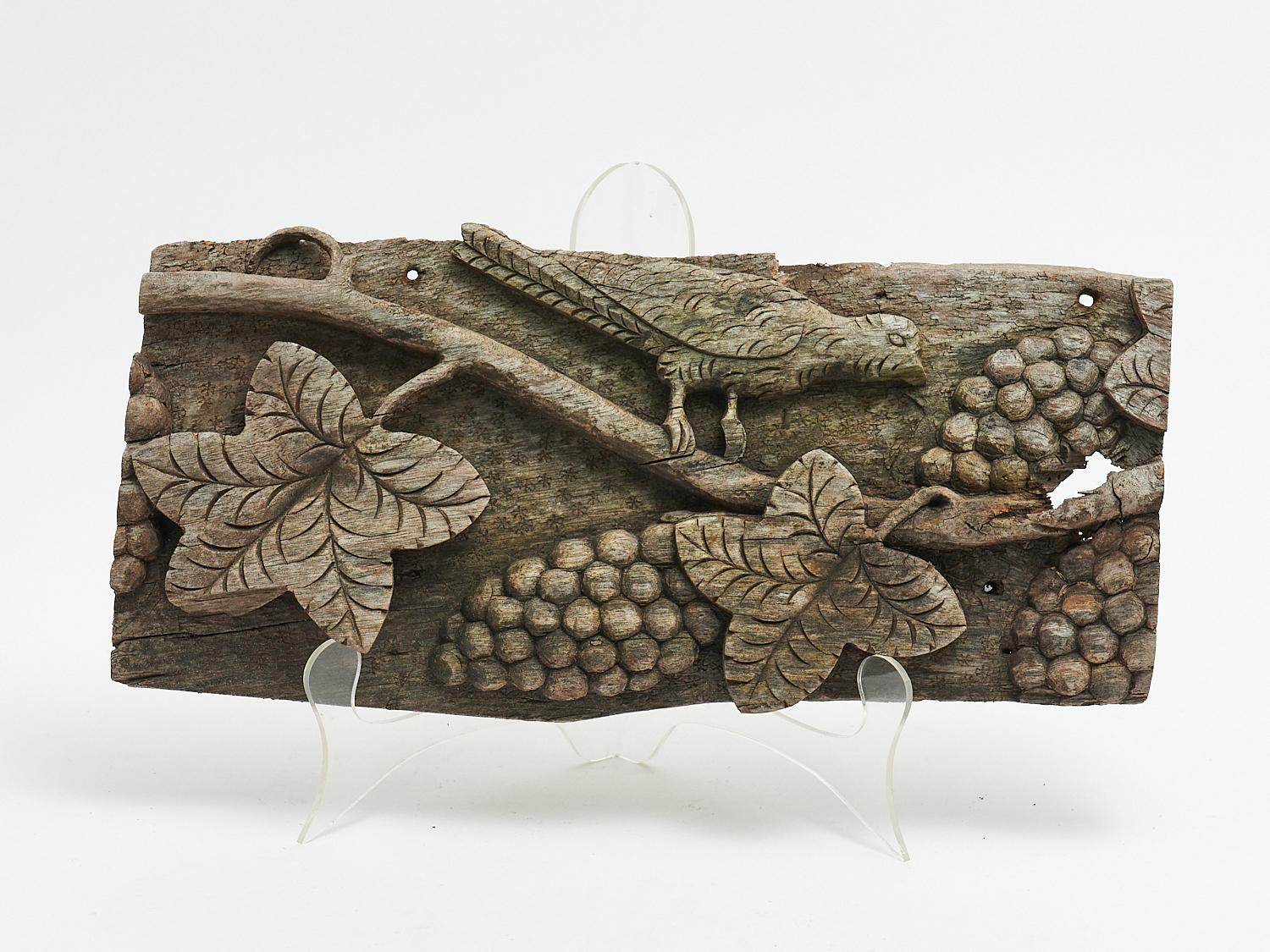 A WOODEN CARVING DEPICTING A BIRD ON A VINE H.40CM, LEONARD JOEL LOCAL DELIVERY: MEDIUM