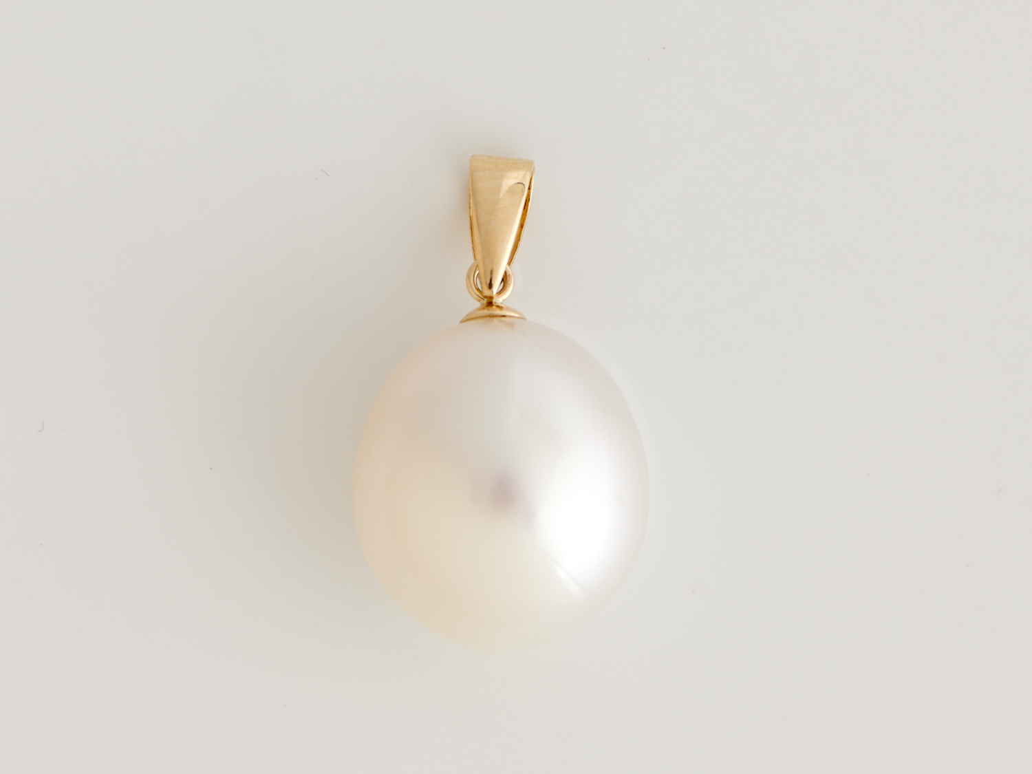 A 13MM WHITE SOUTH SEA PEARL PENDANT, TO A BAIL IN 9CT GOLD
