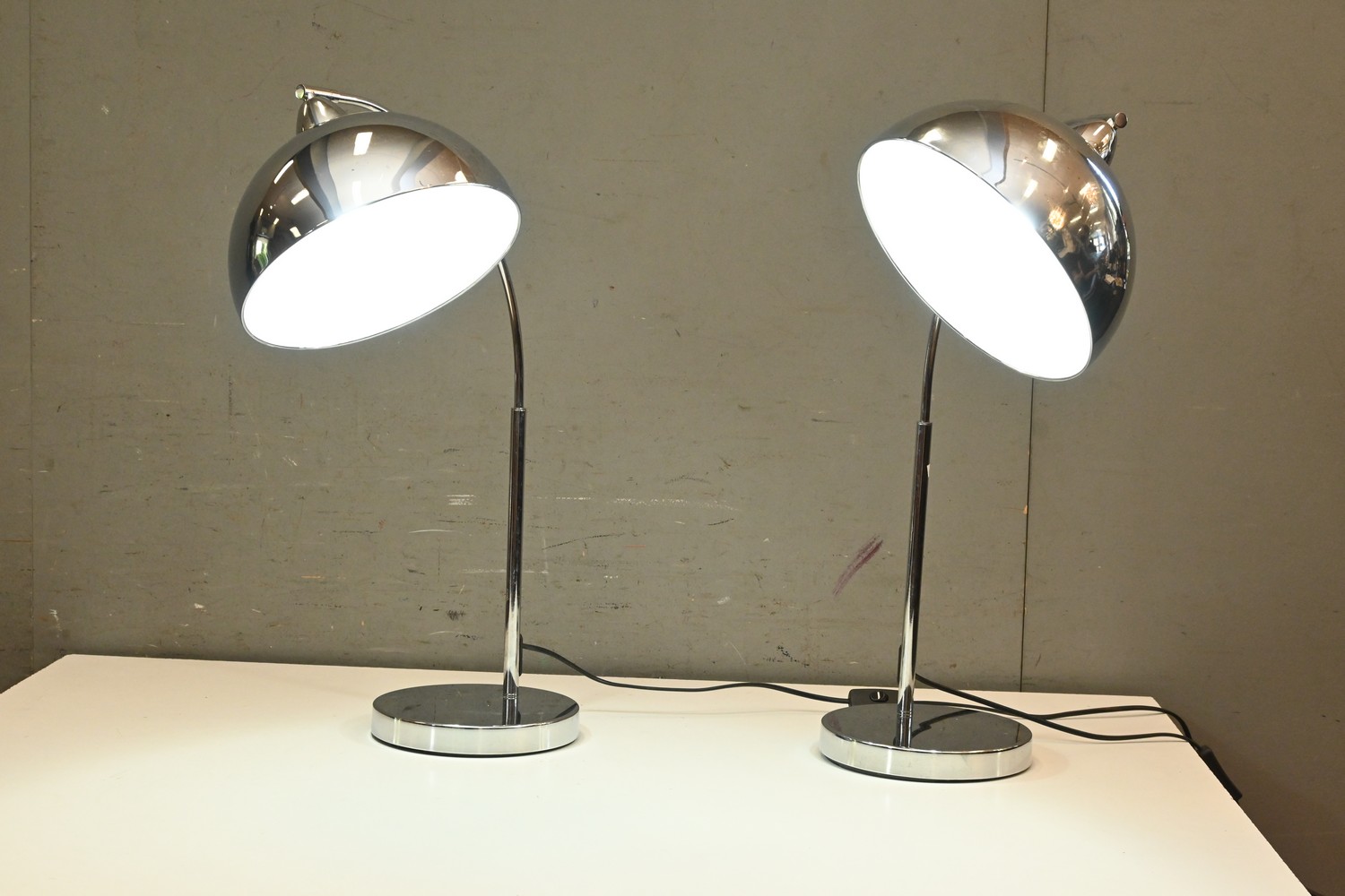 A PAIR CHROMED METAL TABLE LAMPS ( 61H CM) (LEONARD JOEL DELIVERY SIZE: LARGE)
