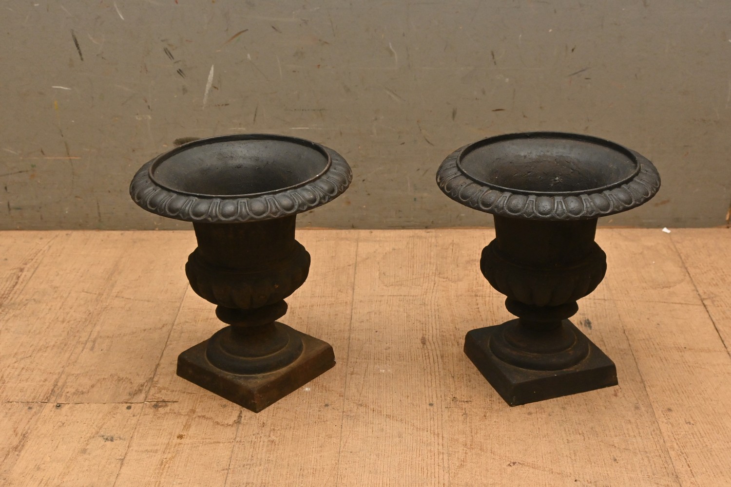 A PAIR OF CAST IRON PLANT POTS (25H X 23CM DIA CM) (LEONARD JOEL DELIVERY SIZE: LARGE)