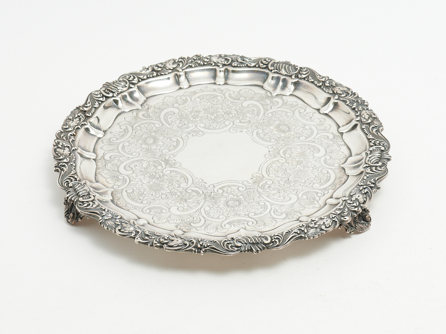 A SILVER PLATED CIRCULAR TRAY DIA.35CM, LEONARD JOEL LOCAL DELIVERY: MEDIUM